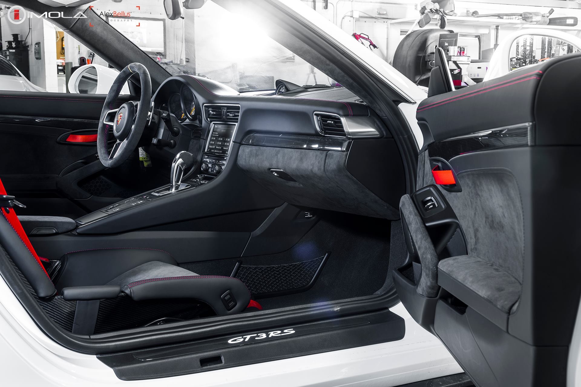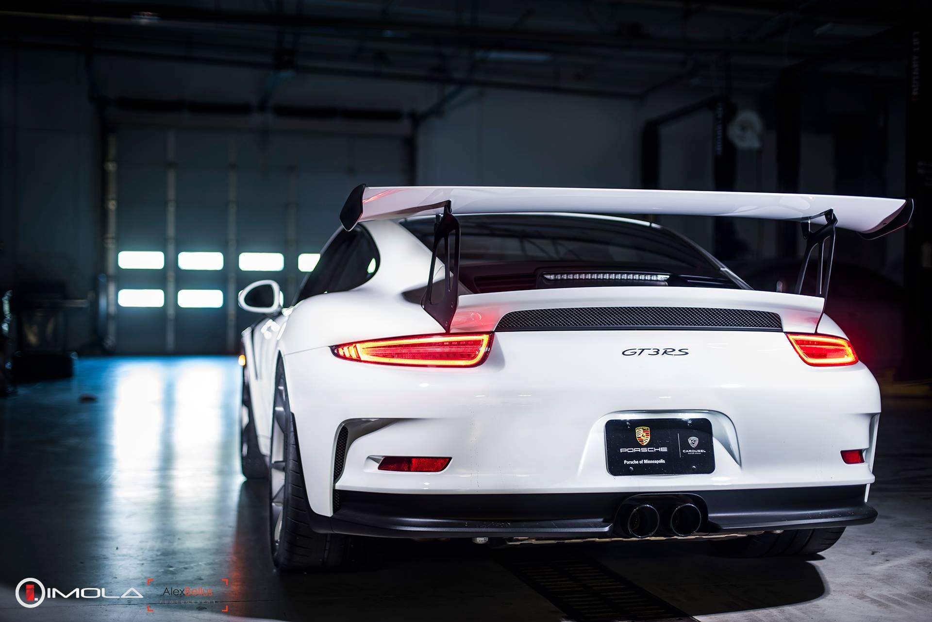 Porsche 911 GT3 RS 2016 đầu tiên vừa đến Mỹ thông qua đại lý Imola Motorsports. 911 GT3 RS có màu trắng bóng đơn giản, làm nổi những đường nét mềm mại trên xe.