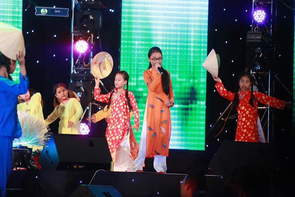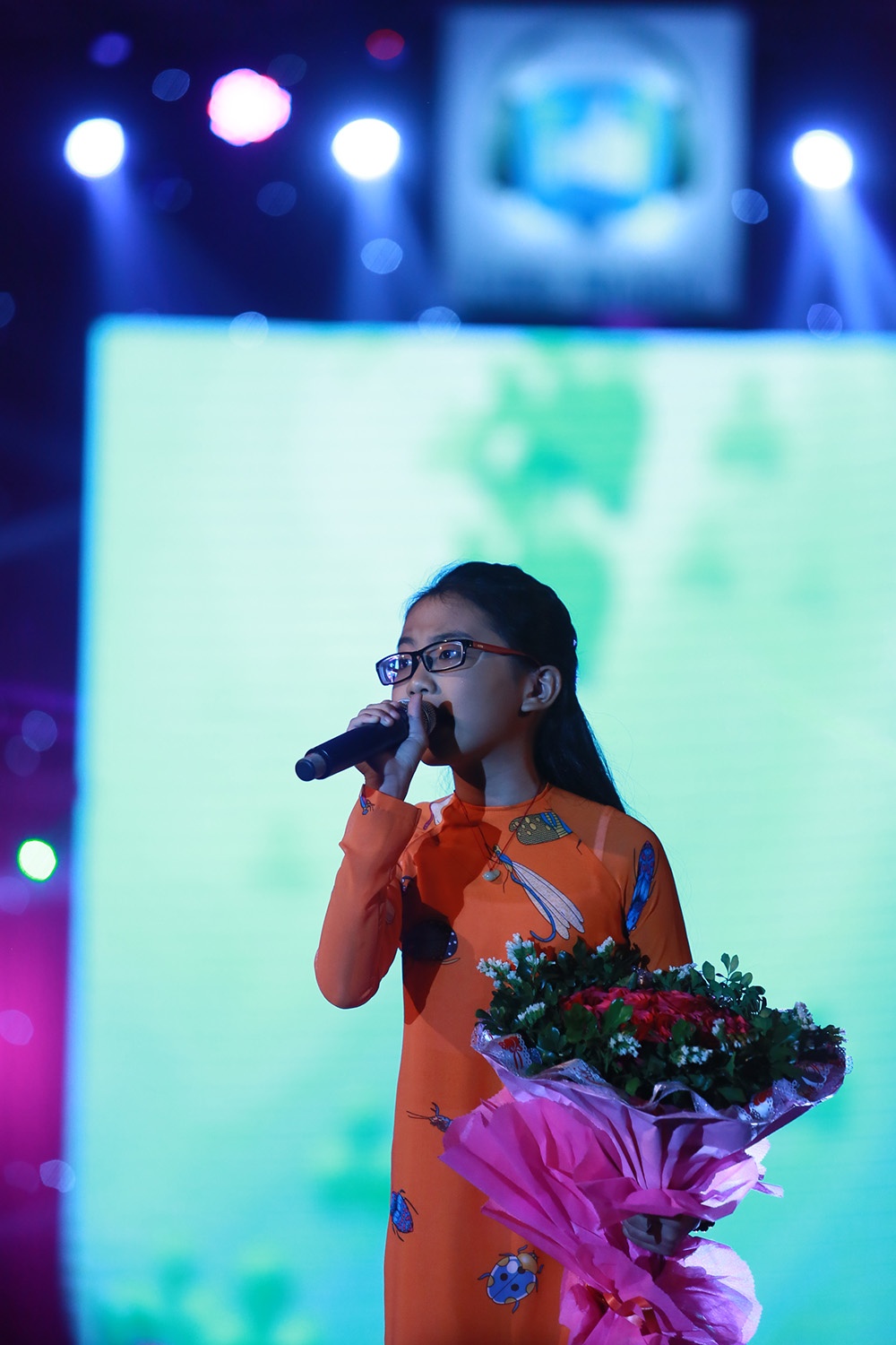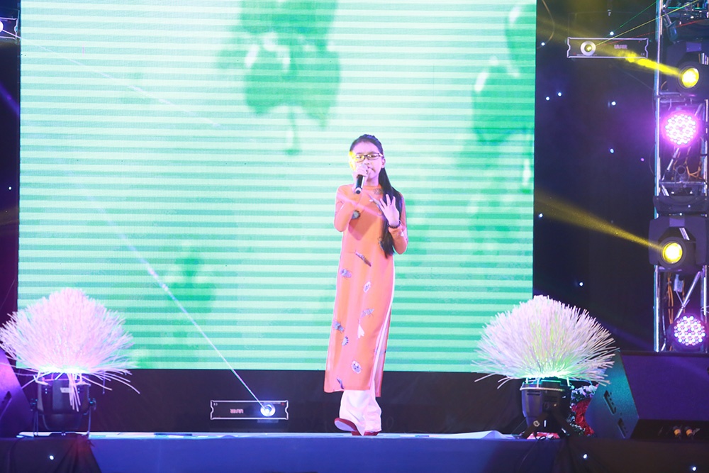 | Phần trình diễn ca khúc Truyện tình nhà thơ của cô với màn múa phụ họa của một khán giả nhí nhận được sự hưởng ứng đông đảo của người hâm mộ. |
