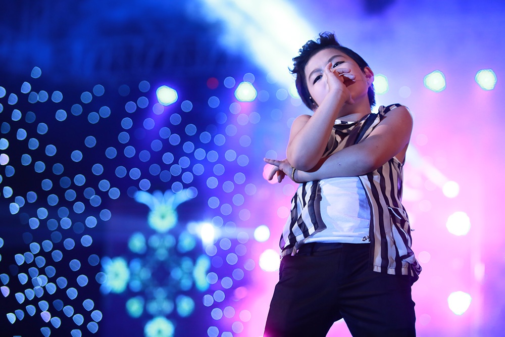 | Mở đầu màn trình diễn là ca khúc Gangnam Style vốn đã rất quen thuộc với khán giả trong thời gian qua. |