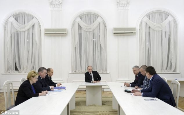 | Tổng thống Nga chủ trì một phiên họp với các quan chức an ninh tại Volgograd hôm 1/1. Ảnh: Reuters |