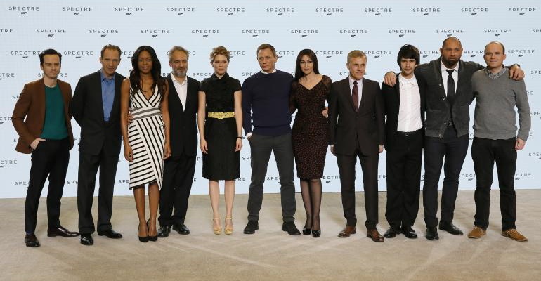 | Toàn bộ đoàn làm phim của bom tấn Spectre tại lễ họp báo ra mắt diễn viên. |
