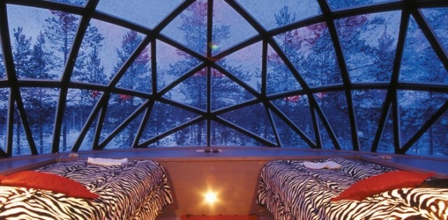 | Cực quang là một trong những hiện tượng thiên nhiên kỳ thú nhất ở Bắc Cực. Chúng là các vệt sáng đầy màu sắc xuất hiện trên bầu trời ban đêm. Tuy nhiên, thời tiết lạnh giá với nhiệt độ xuống tới hàng chục độ âm sẽ ngăn cản những người muốn khám phá hiện tượng này. Để đáp ứng nhu cầu của du khách, người dân ở ngôi làng Saariselka, tỉnh Lapland, Phần Lan, đã tạo ra một khách sạn đặc biệt với những mái nhà trong suốt, giúp du khách chiêm ngưỡng các vệt sáng cực quang cùng chăn ấm, nệm êm. Mỗi lều tuyết đều có nhà vệ sinh, những giường sang trọng và phòng tắm hơi. Ngoài ra, khách sạn còn có những túp lều tuyết, nhà hàng tuyết và nhà nguyện tuyết, dành cho những cặp uyên ương muốn kết hôn tại cực bắc của trái Đất. |