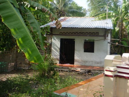 Băng qua đoạn sân ngập nước, đầy cỏ dại, khách bước vào căn nhà nhỏ ở ấp Đông Thạnh, xã Đông Thuận (huyện Thới Lai, TP Cần Thơ). Đây là nơi sống của cha mẹ Nhờ, bảo mẫu nhẫn tâm trong vụ án hành hung đến chết cháu bé mới 18 tháng tuổi vừa xảy ra tại TP.HCM.