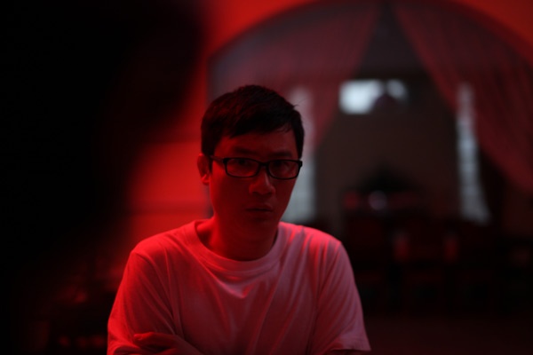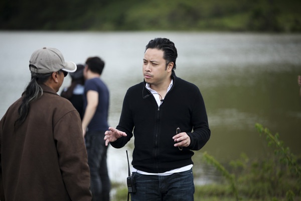 | Đạo diễn Victor Vũ cùng họa sĩ thiết kế Mã Phi Hải chuẩn bị cho một cảnh quay. |
