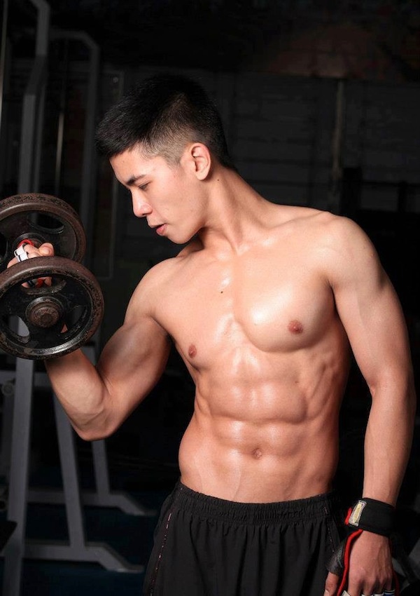 | Các chàng trai cho biết, để có được thân hình 6 múi nóng bỏng, phải kiên trì tập luyện từ trước cuộc thi cả năm trời. Trong ảnh là thí sinh Hoàng Duy Hùng. |