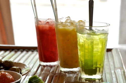 Các loại nước ép nguyên chất như dâu tây, chanh leo... ở đây giá rất rẻ - 12.000 đồng/cốc |