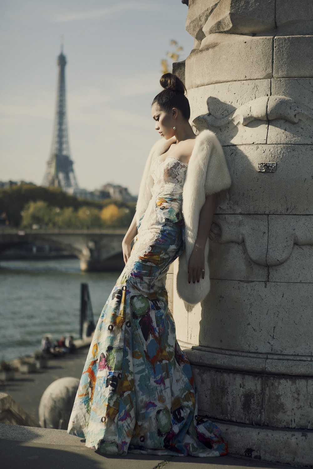 | Tối 31/10, diễn viên Quách An An sang Paris tham dự show thời trang của NTK Hoàng Hải. Có mặt tại sàn diễn thời trang ngoài trời, tầng 2 của tháp Eiffel, nữ diễn viên người Việt cùng ê-kíp của mình tranh thủ ghi lại những khoảnh khắc đẹp. |