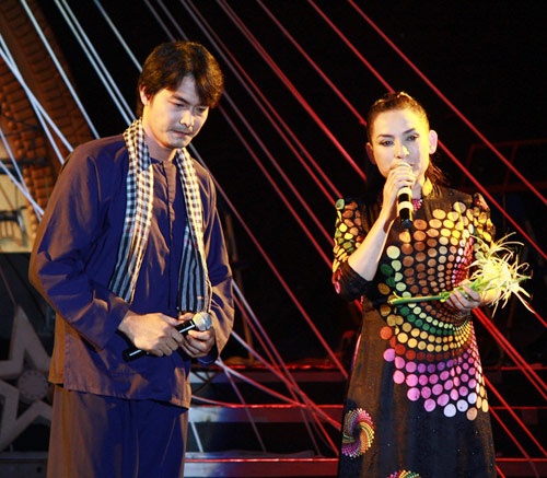 | Nam ca sĩ song ca cùng đàn chị Phi Nhung ca khúc Chắc gì. |