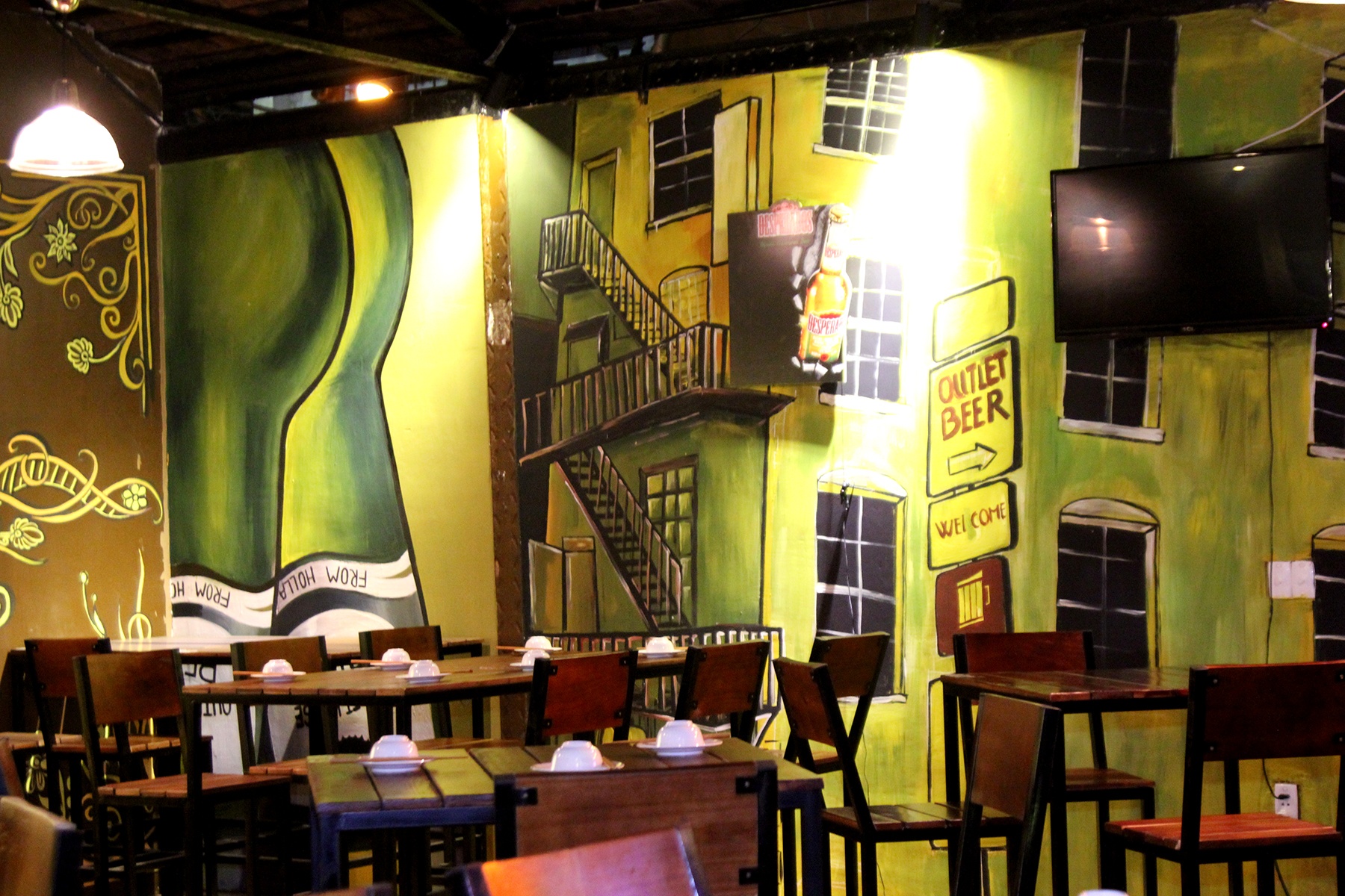 Chia sẻ về việc dùng tranh làm điểm nhấn, anh Trọng, quản lý quán cho biết: "Vẽ tranh trên tường là cách trang trí thường thấy tại các quán châu Âu. Điều này mang đến cảm giác dễ chịu, thân quen cho thực khách". Nghe có vẻ đơn giản, các bức tranh cũng khá trừu tượng, song để có được những bức tranh đầy sức sống như thế, quán đã phải chi tiền triệu cho mỗi bức. Tổng chi phí cho các bức tường này lên tới 20 triệu đồng.