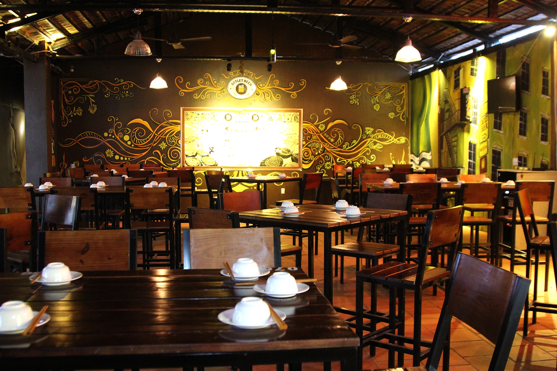 Tọa lạc trên đường Sư Vạn Hạnh, Outlet Beer khiến những người lần đầu đến quán bất ngờ bởi cuối con hẻm nhỏ xíu lại có một quán ăn rộng rãi và ấm cúng.