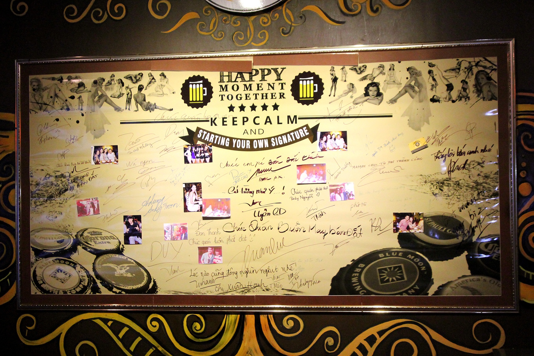 | Bức họa cuộc trò chuyện đầy ngẫu hứng của những quý cô sành điệu và sang trọng. Bức đơn giản là một quầy bar cao, ghế cao với những người phụ nữ đang thưởng thức vội ly bia sau một ngày làm việc căng thẳng. Nổi bật nhất có lẽ là bức tường với khung tranh đơn giản, nơi bạn có thể tìm thấy chữ ký hay ảnh của những người nổi tiếng như Hoàng Thùy Linh, Thanh Hằng, Bình Minh, Nathan Lee... |