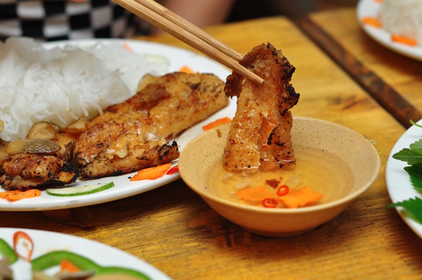 Cá basa cũng là món hot của quán. Cá basa thịt nạc lại ít xương nên cơm nấm cá nướng hoặc cơm cá sốt nấm đều ngon. Song ấn tượng hơn cả là món bún nấm cá basa nướng. Món này cực hợp cho mùa nóng bởi thưởng thức theo kiểu bún chấm mát miệng, dễ ăn. Cá lại nướng cháy cạnh, bên ngoài giòn tan, thơm phức, bên trong vẫn mềm ngọt cắn vào đã miệng. Điểm đáng khen ngợi nữa, nước chấm pha rất vừa miệng, khiến món bún cá nướng này càng “gây nghiện” với nhiều khách.