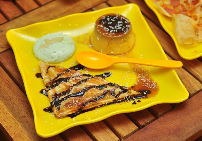 Quán có nhiều món lạ như bánh tráng cuộn, cơm cháy trộn, pizza cơm cháy, trà sữa panna cotta... với mức giá khoảng 10.000 - 40.000 đồng.