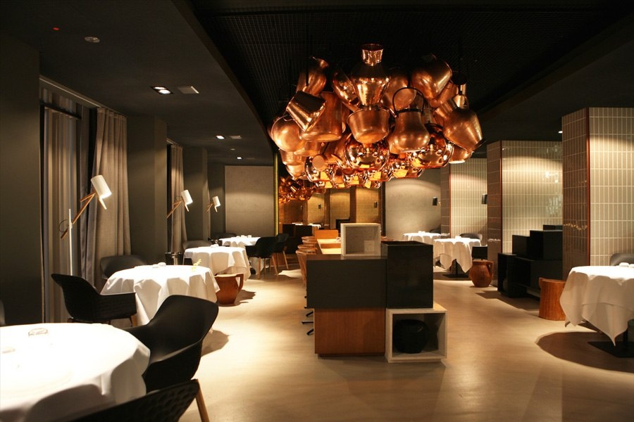 | Tới với 5-cinco, bạn sẽ có cảm giác nơi đây như một “căn bếp” chính hiệu khi những đồ trang trí trên trần nhà chính là những vật dụng trong bếp như ấm, xoong, nồi… kết hợp với ánh đèn tạo nên sự lung linh, huyền ảo. Với không gian ấm cúng, nội thất hiện đại, 5-cinco vinh dự lọt vào top 10 nhà hàng mới có kiến trúc đẹp nhất thế giới. |