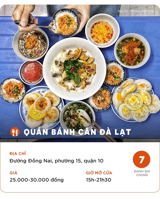 Không phải tới Đà Lạt, bạn cũng có thể thưởng thức bánh căn nức tiếng phố núi trong con hẻm trên đường Đồng Nai, TP.HCM. Ngoài bánh căn, quán còn phục vụ những món ăn khác được yêu thích ở Đà Lạt như sữa chua phô mai, bánh ướt lòng gà…