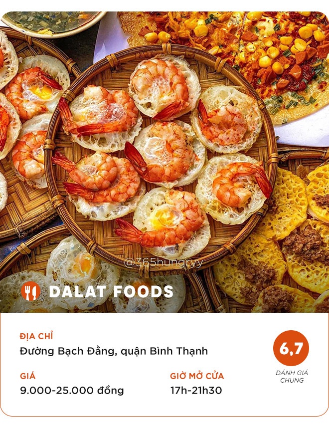 DaLat Foods là quán ăn chuyên phục vụ những món ngon nổi tiếng của Đà Lạt (Lâm Đồng) giữa lòng TP.HCM. Trong đó, bánh căn là món nổi bật được nhiều thực khách dành lời khen. Bạn có thể chọn bánh căn trứng cút hoặc trứng gà.