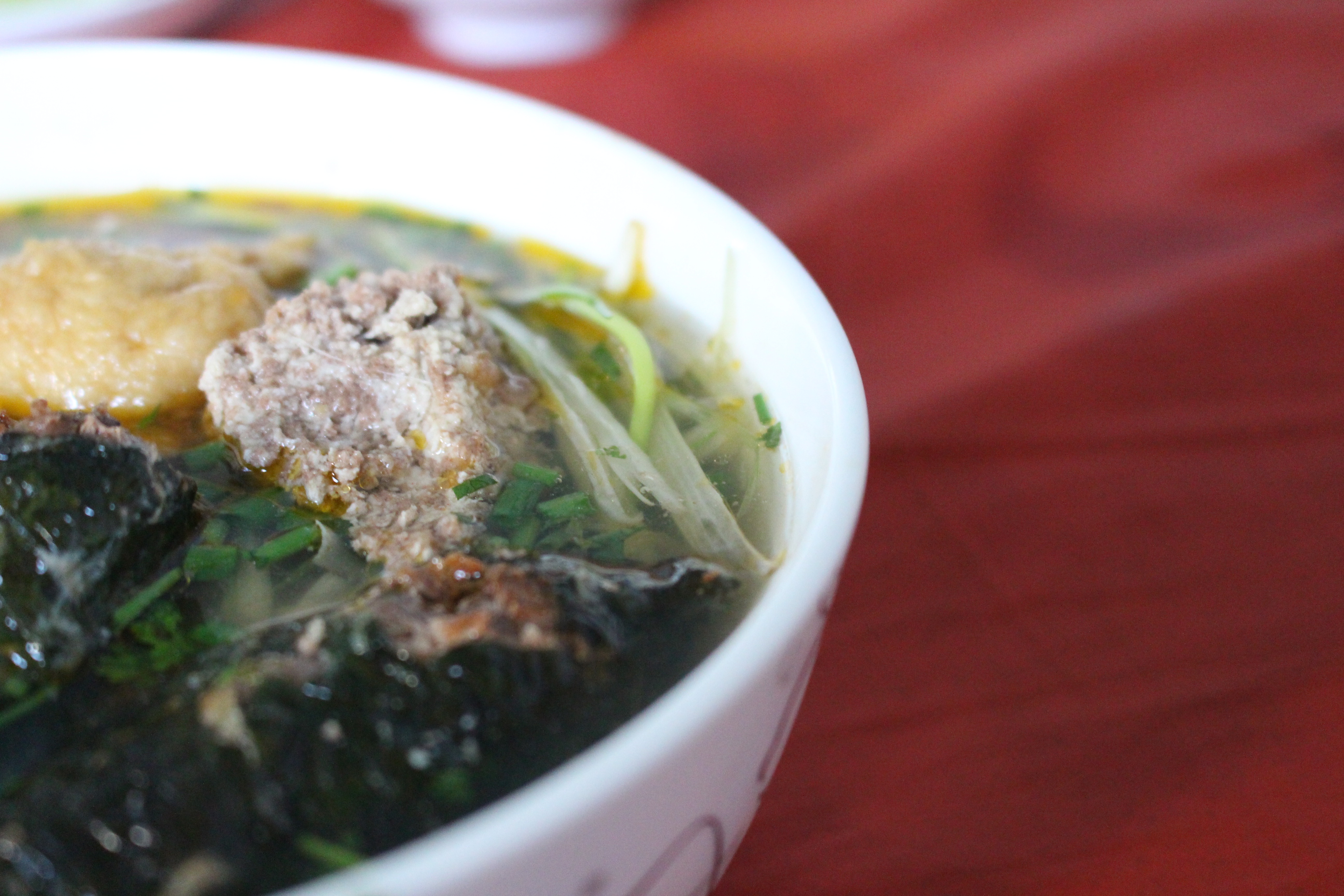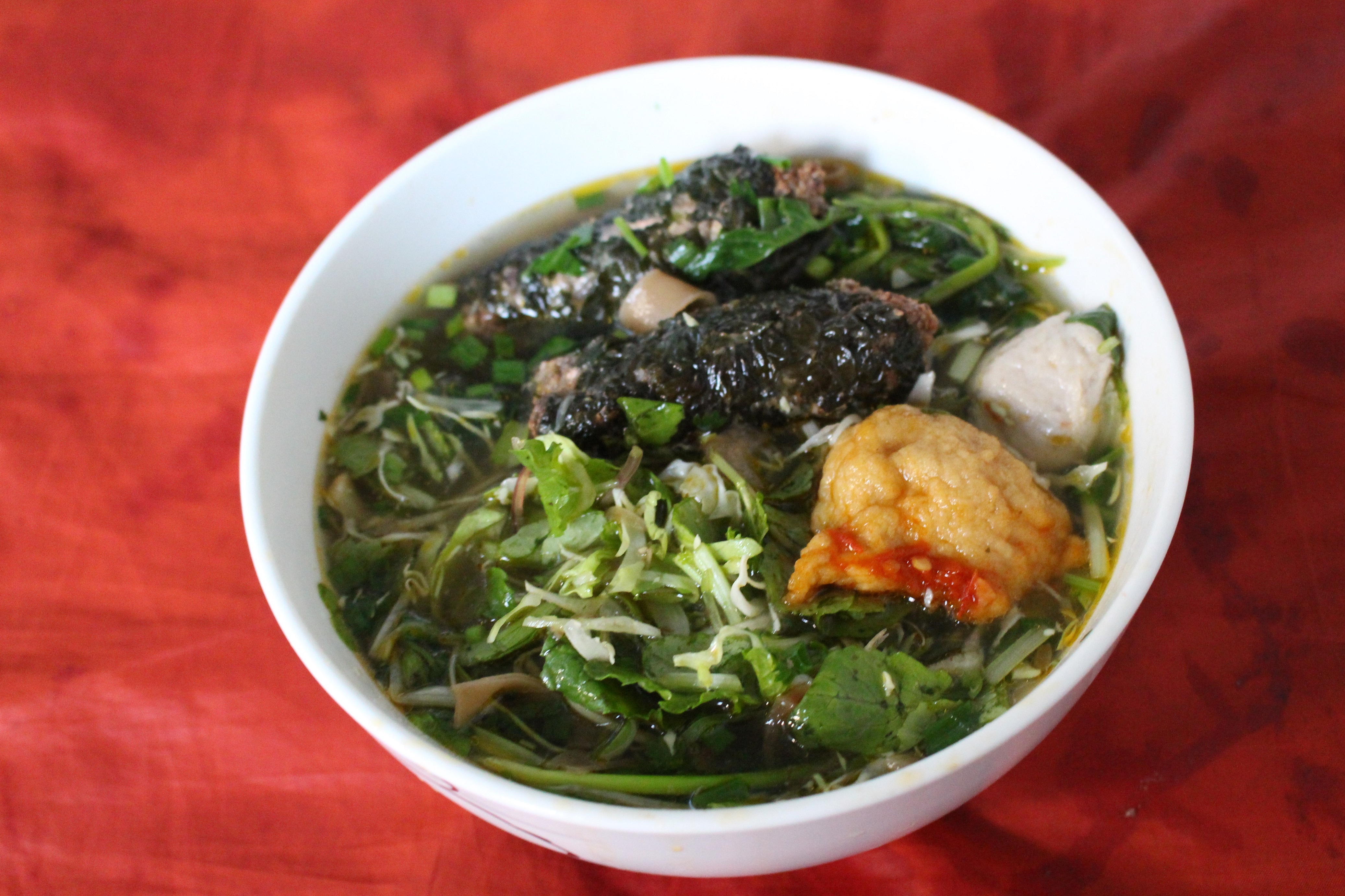 | Trong danh sách các món trên, được lòng các cô, các nàng nhất là bánh đa cua "bao rau". |