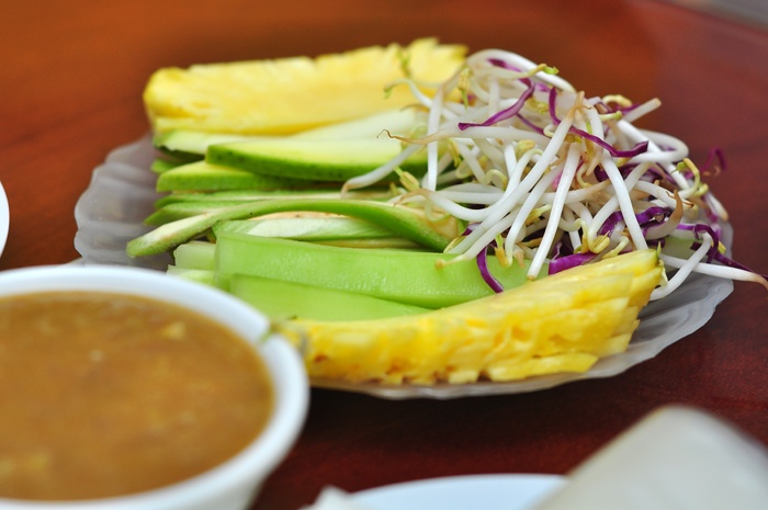 Rau sống, đồ ghém sạch sẽ, đày đặn.