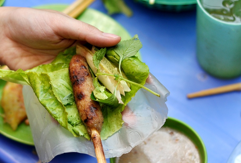 Đến đây, nếu đi hai người, bạn nên gọi 4 bánh xèo kèm thêm chục nem lụi, tráng miệng thêm bằng 2 cốc trà đá nữa cho đỡ khô khan và giải ngấy. Tính toán ra chưa tới trăm bạc, đôi bạn đã no nê với 2 món ăn nổi tiếng của người miền Trung.