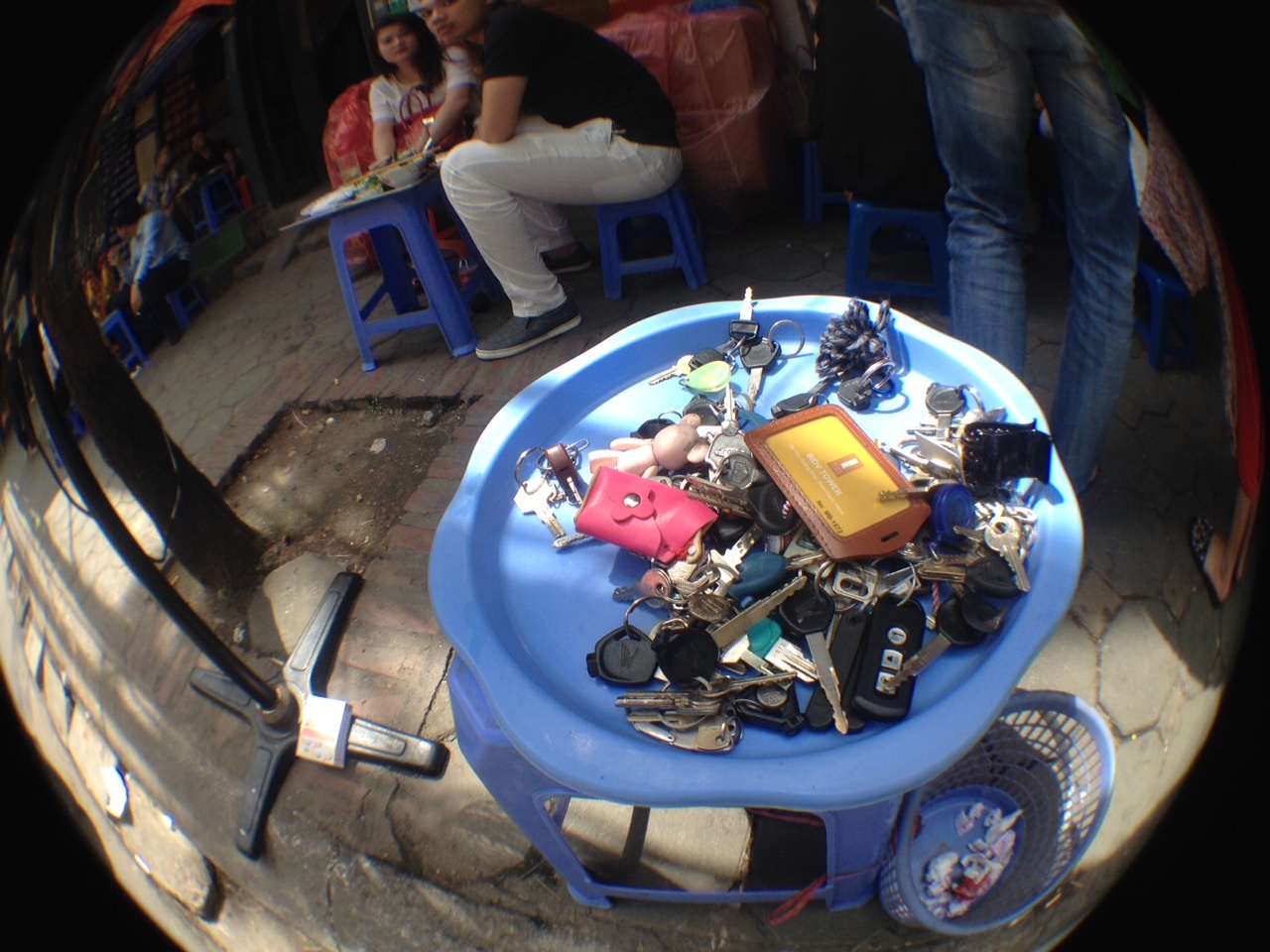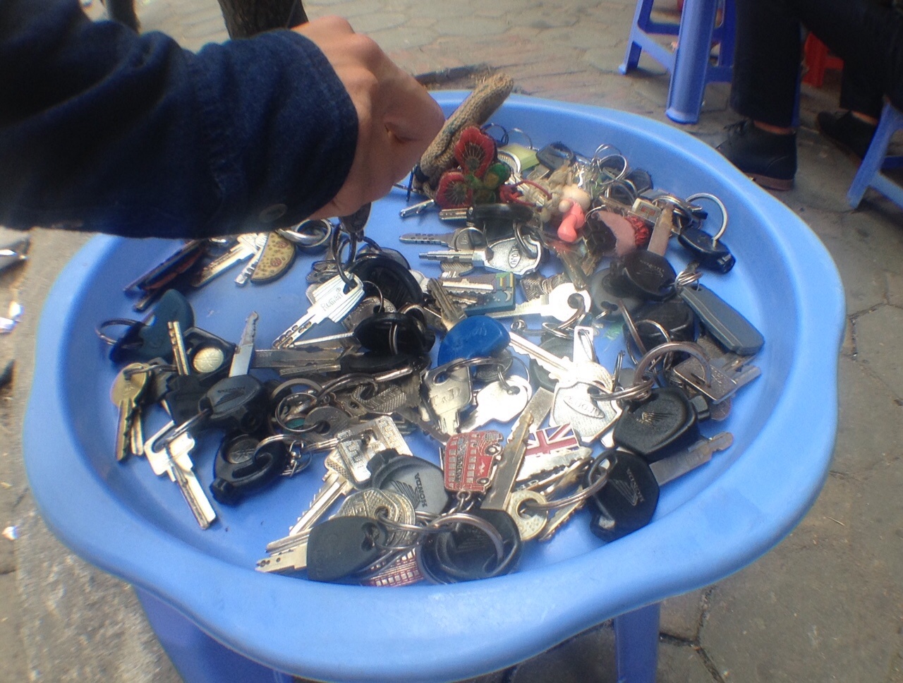 | Chìa khóa của toàn bộ khách được đặt trên một cái khay ngay trước cửa hàng. |