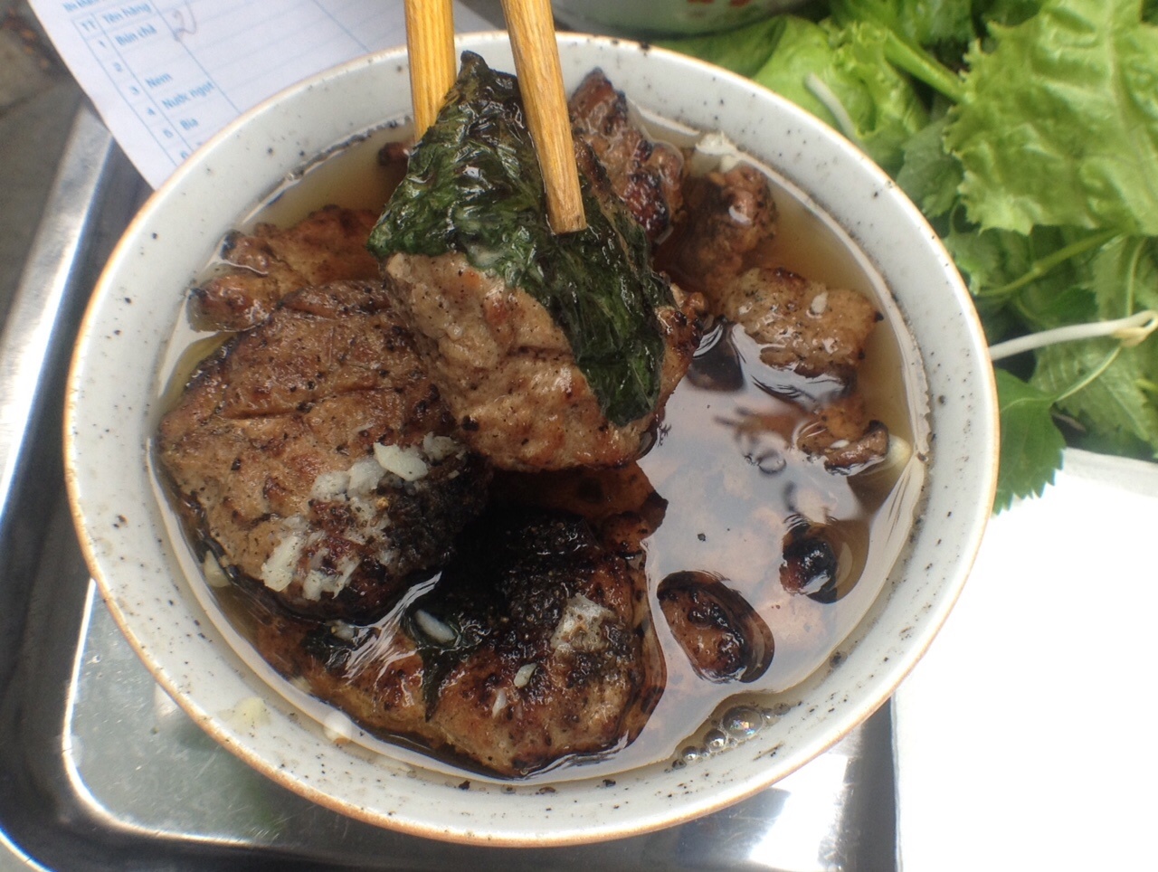 ... và chả miếng dày dặn, thịt mềm, không hề bèo nhèo mỡ như nhiều nơi. Nước mắm chủ quán pha vừa miệng, khách ít khi phải gia giảm thêm.