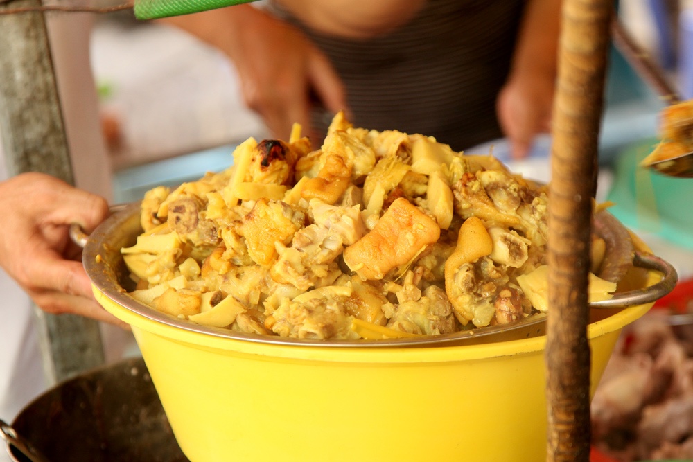 Đồ ăn ở đây từ mắm tôm, đậu rán, chả cốm cho đến lòng nướng, bún chả, giả cày đều là những món quen thuộc phổ biến. Cho rằng ngon tới mức khách phải xuýt xoa, tấm tắc thì không hẳn, tuy nhiên ưu điểm là tất cả chế biến đều tay, món nào khách cũng thấy dễ ăn và chấm được điểm khá. Chẳng hạn như mắm tôm ngon, dậy mùi; đậu rán chịu khó cắt nhỏ rồi mới chiên nên giòn “tứ phía”; dồi tiết làm khá mềm ngọt hay bún chả có nước chấm phá chuẩn và thịt nướng rất thơm…