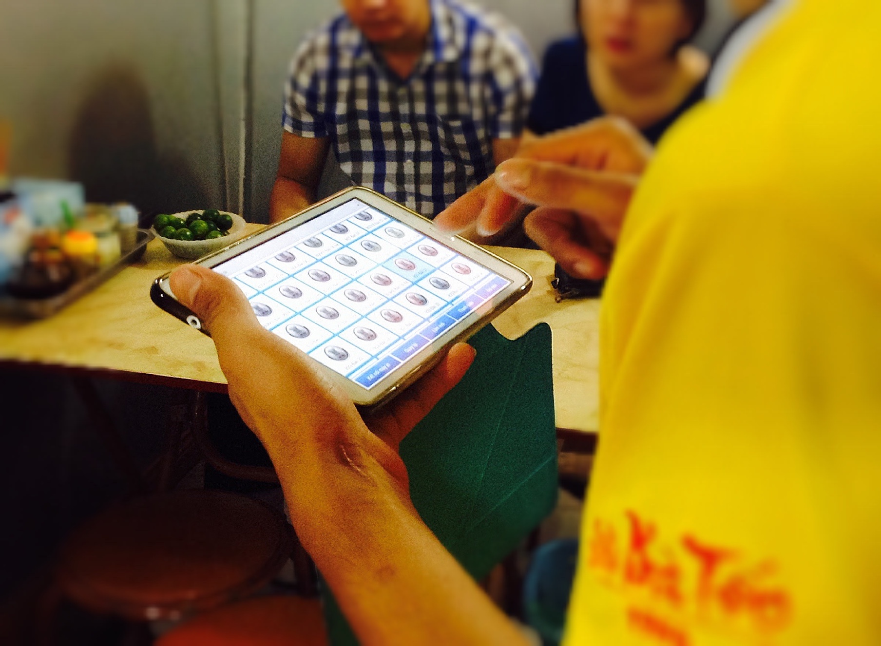 Quán bún riêu ốc bình dân ghi món bằng iPad