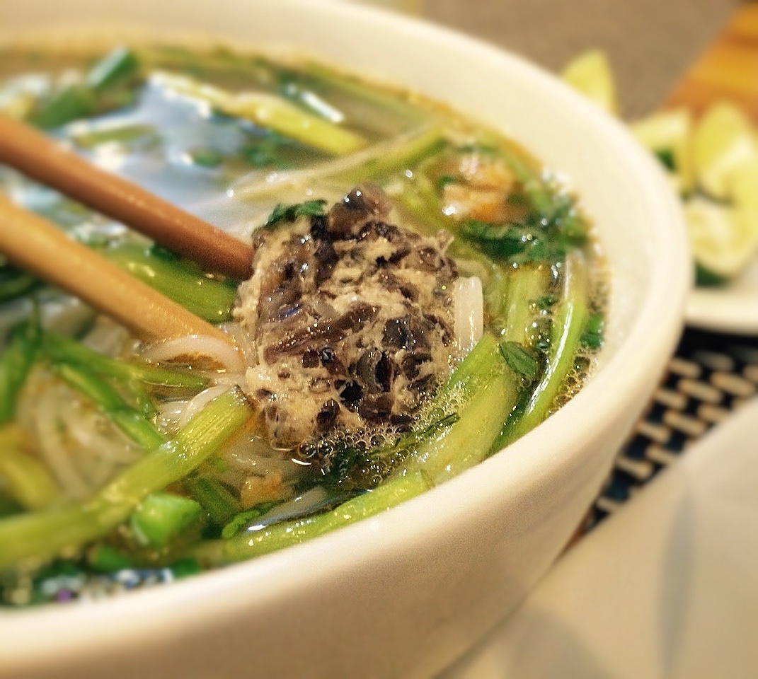 Ưu điểm nữa là nước canh thiên về vị chua thanh, rất dễ thưởng thức, nhất là trong mùa nóng. Bún tôm ăn kèm rau cần cùng mọc viên mộc nhĩ.