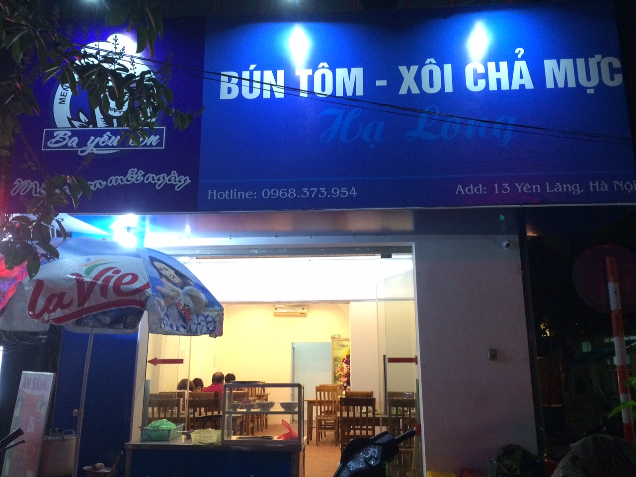 Yên Lãng (quận Đống Đa, Hà Nội) là con phố mới nhưng đã sớm có nhiều quán xá thú vị. Thời gian này, ngang qua đây, người ta dễ chú ý đến một quán ăn treo biển "Bún tôm - Xôi chả mực Hạ Long".