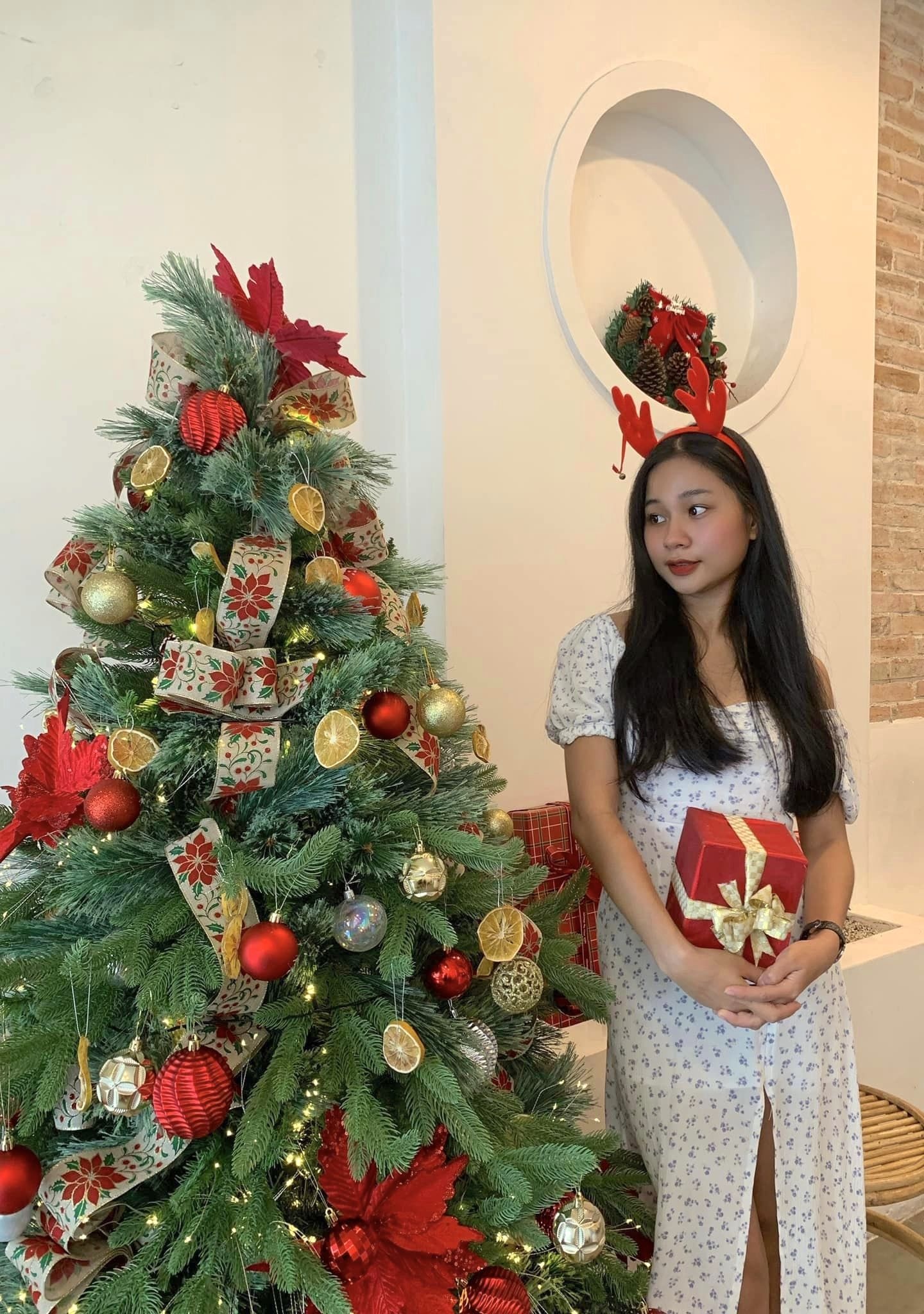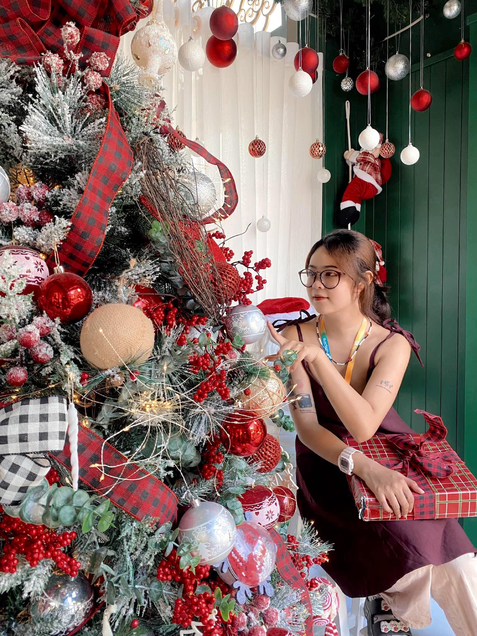 Hân cho biết để sở hữu những tấm hình mang không khí Giáng sinh đúng điệu, bạn chỉ cần chọn đồ có tone màu hợp mùa Noel như đỏ, xanh lá, trắng và đen.