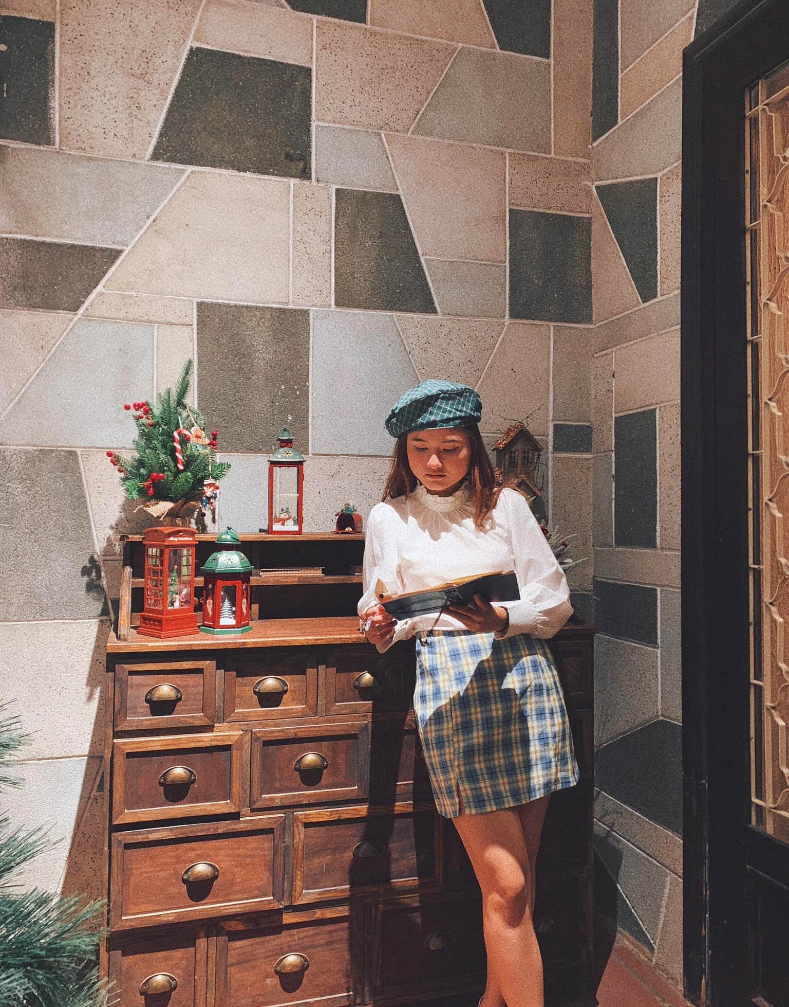 Huyền cho biết Cocobee Coffee & Tea (Tân Bình) là tiệm mà bản thân ấn tượng. Quán có thiết kế đẹp với phong cách vintage farmhouse, tựa ngôi nhà ngoại ô châu Âu êm đềm và ấm cúng. Dịp Giáng sinh, quán thêm phần rực rỡ bởi những cây thông Noel kết hợp quả châu, chiếc kệ lò sưởi, hộp quà, các đồ trang trí độc lạ... Background đậm chất phương Tây với nét tinh tế, cổ điển càng làm tăng cảm hứng check-in.