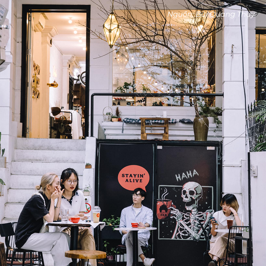 Trong một lần tìm địa chỉ xỏ khuyên, tôi tình cờ phát hiện ra quán. Era là một tổ hợp cà phê, xăm hình và xỏ khuyên nằm ngay sát hồ Hoàng Cầu.
