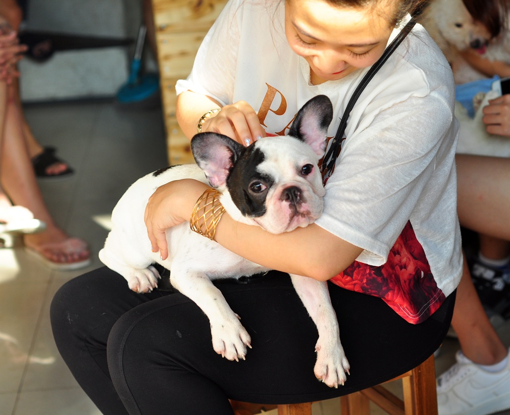 | Những chú chó hiền lành thân thiện nên không hề ảnh hưởng tới không gian mèo của quán và càng khiến các bạn trẻ thích thú. |