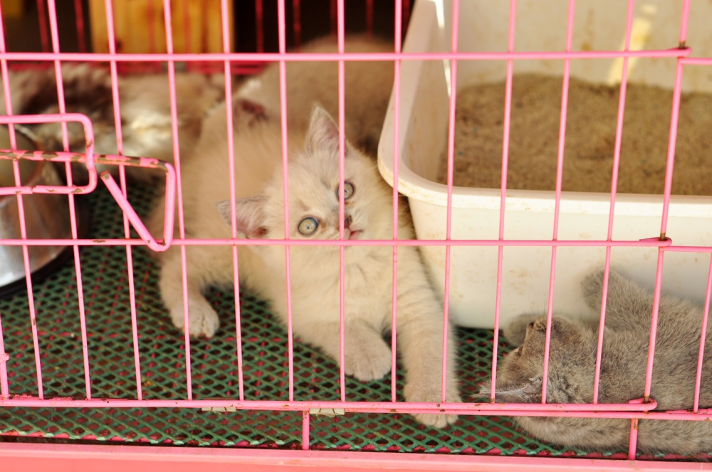 Một số mèo con nhốt cũi là mèo để bán.
