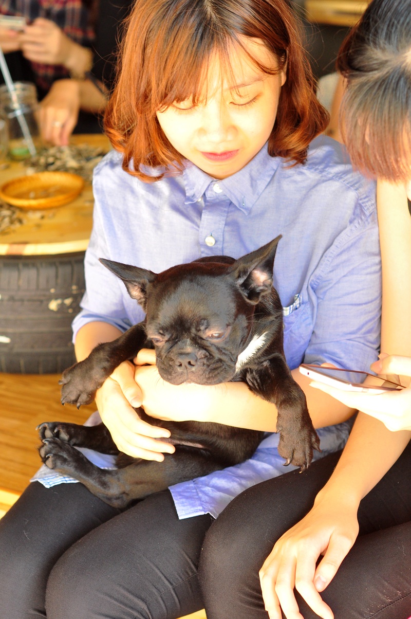 Ngoài mèo ra, quán cũng nuôi vài chú chó dễ thương.