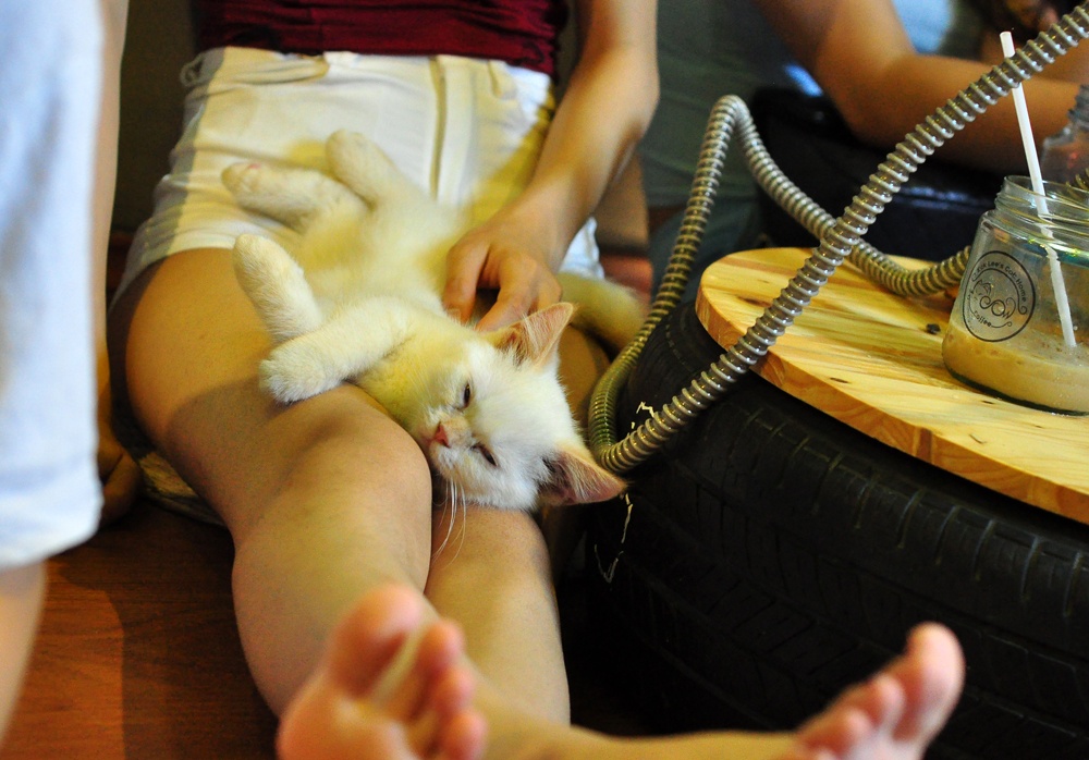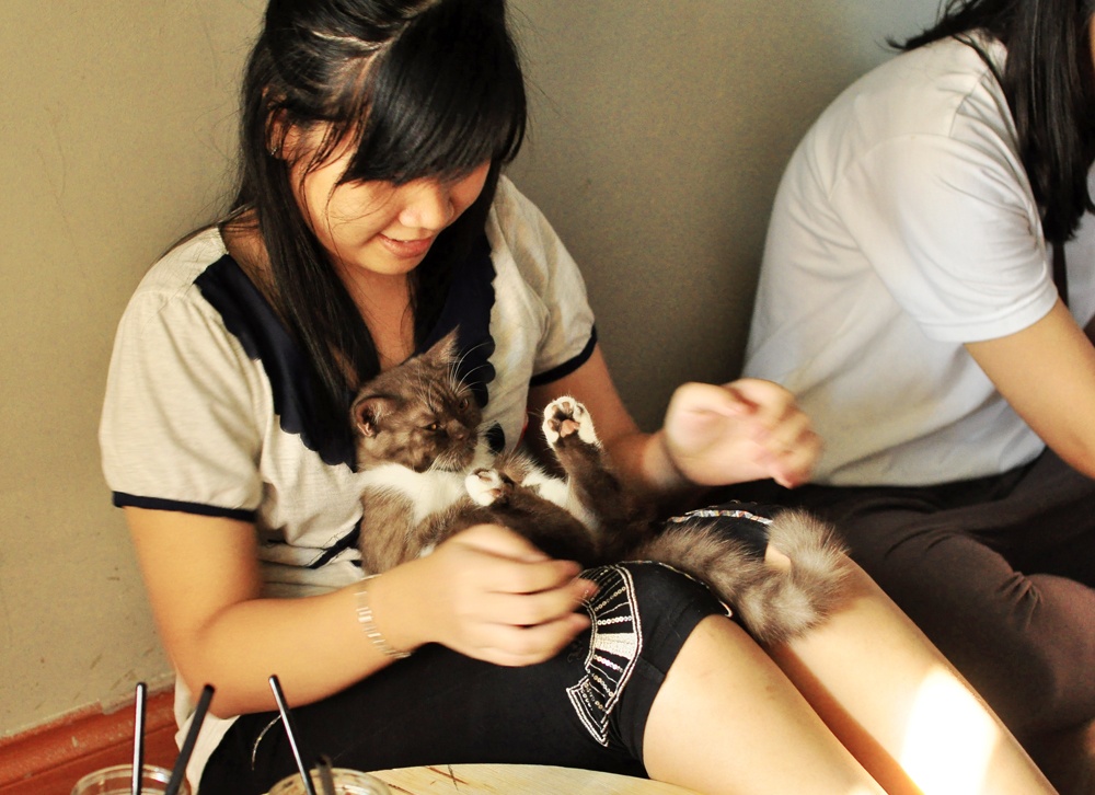 Quán cà phê mèo khiến các cô gái mê mẩn