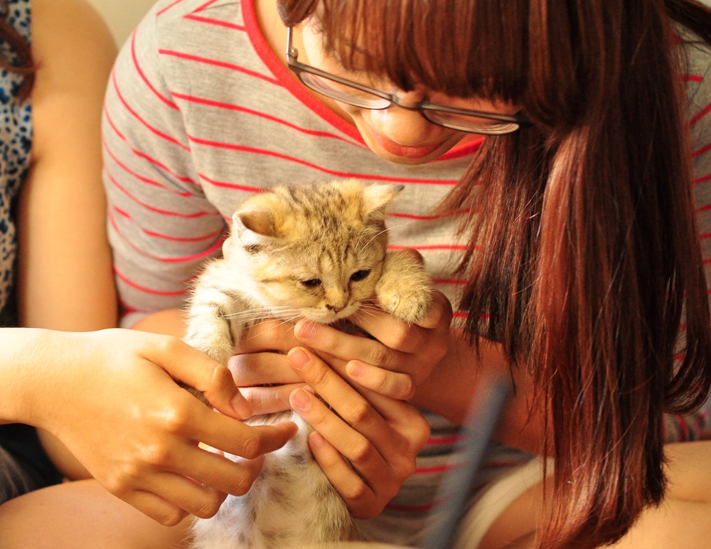 Các cô gái dành hàng giờ chơi đùa với mèo mà không biết chán.