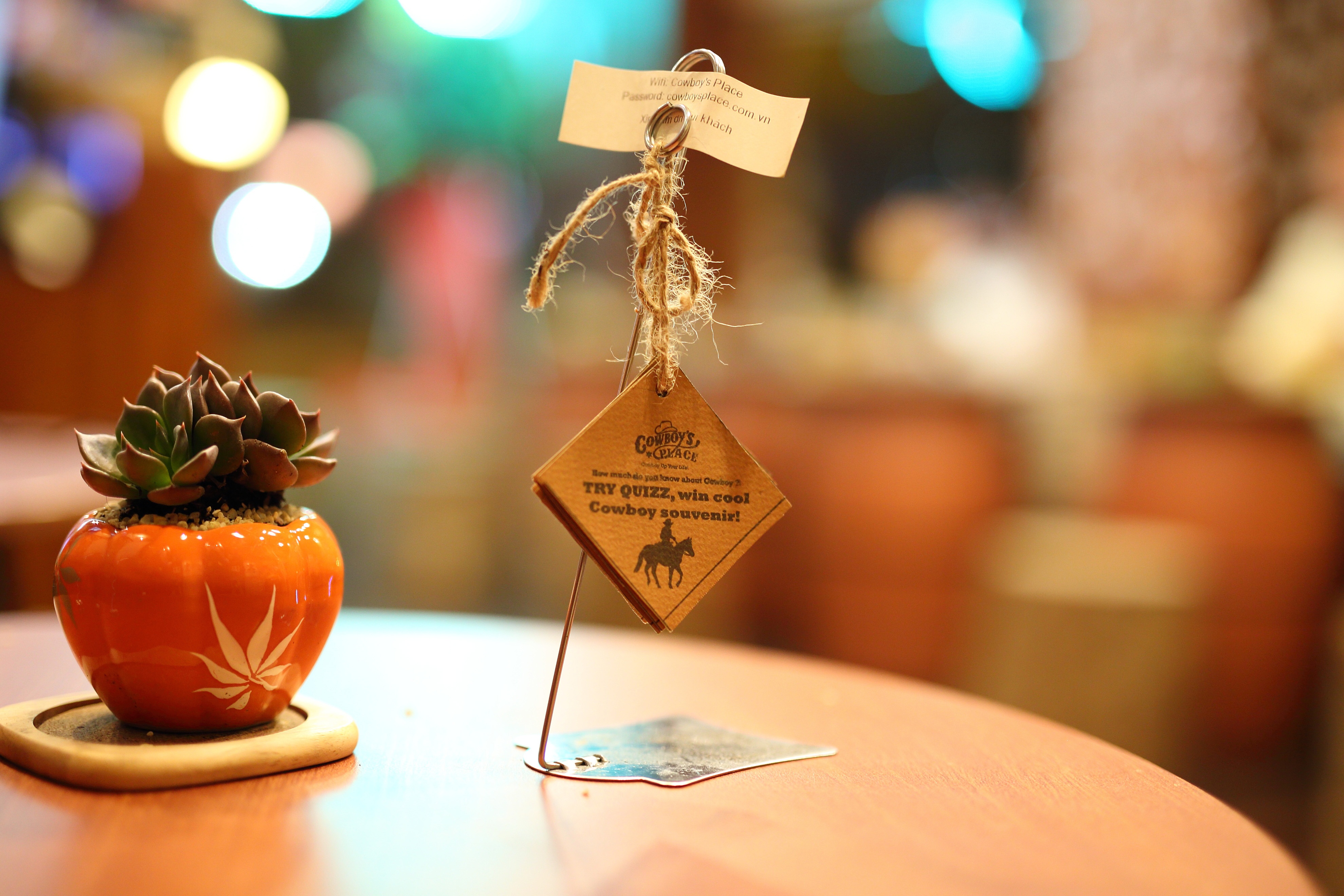 | Thông điệp ấy cũng được truyền tải qua những vật dụng trang trí hand made như tấm card in tên quán. |