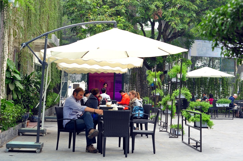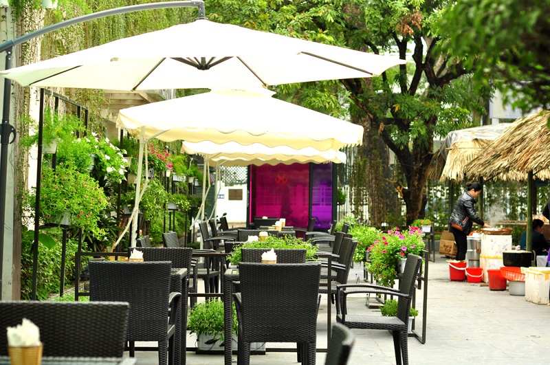 Cây – nắng và hoa sẽ là ấn tượng ban đầu cũng là thứ làm nên dư vị khó phai. Đến đây vào những buổi sáng trong lành hẳn là tuyệt vời nhất. Ngồi dưới tán ô trắng, thả mình bên những hàng hoa nhỏ xinh, cảm nhận hơi ấm dịu nhẹ của tia nắng đầu ngày, rồi nhâm nhi một tách cà phê thơm để mọi cảm giác nồng hơn, sâu hơn, có lẽ bất kể ai cũng một thoáng “tự mãn” với suy nghĩ “Ta đang tận hưởng cuộc sống tươi đẹp này”. Còn buổi tối, khoảnh khắc trữ tình tìm đến với bạn khi mà quán đã lên đèn, ánh điện lung linh, tiếng nhạc êm đềm hòa trong gió thoảng.