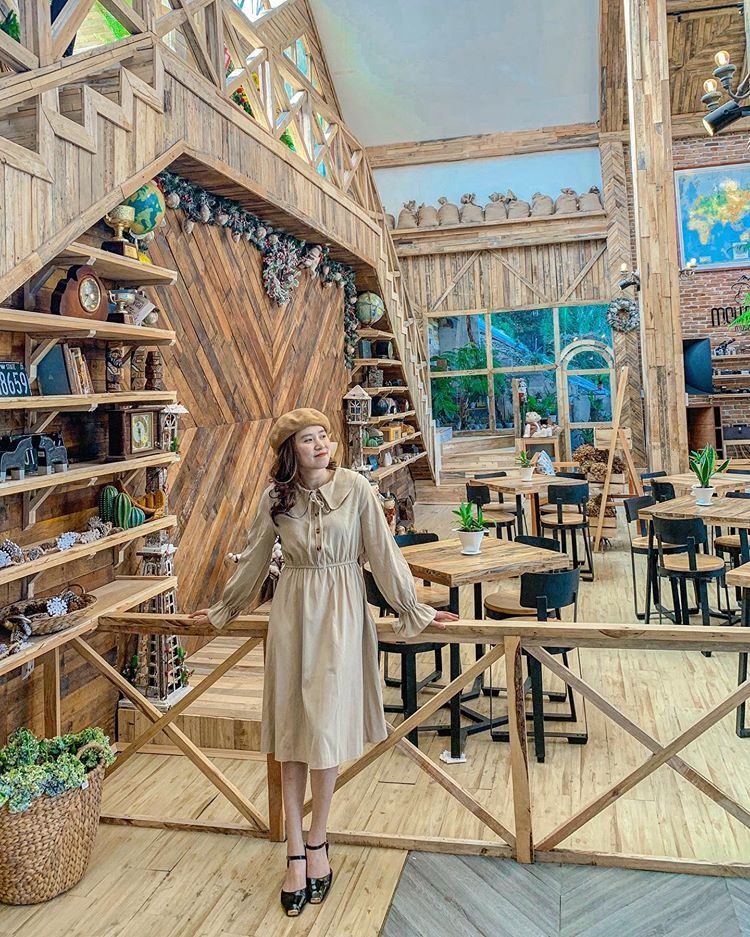 Nằm cách trung tâm thành phố không quá xa, quán cà phê nổi bật với gian nhà gỗ rộng, trần cao đậm phong cách Bắc Âu. Bộ bàn ghế gỗ, phong cách trang trí ấm áp, sang chảnh trở nên phù hợp với tiết trời lúc nào cũng se lạnh của vùng đất Tây Nguyên. Thanh Hằng, Trang Hý, Kiều Trinh là những cái tên nổi tiếng từng ghé check-in nơi đây. Ảnh: Phamthanhhang_. |