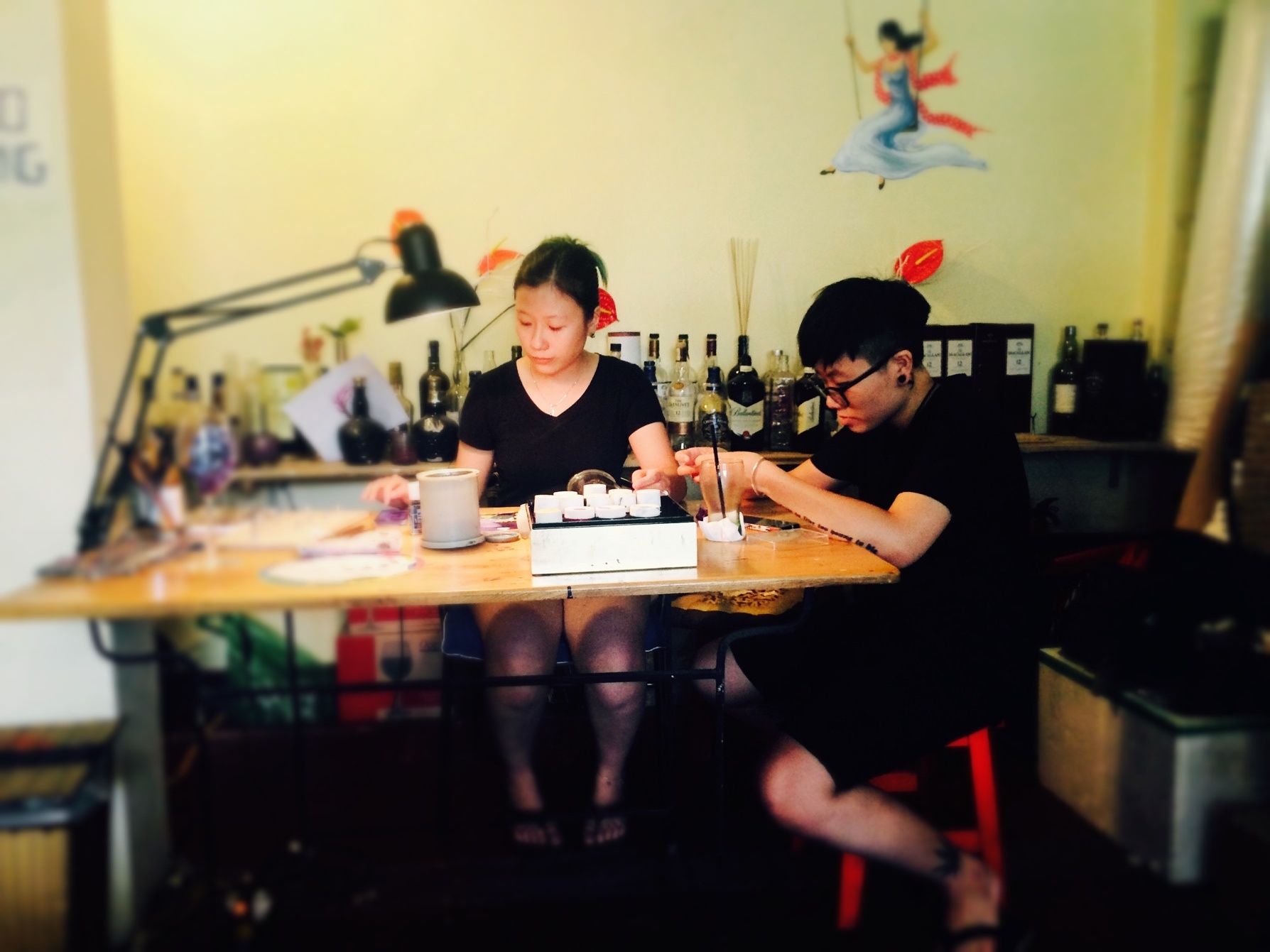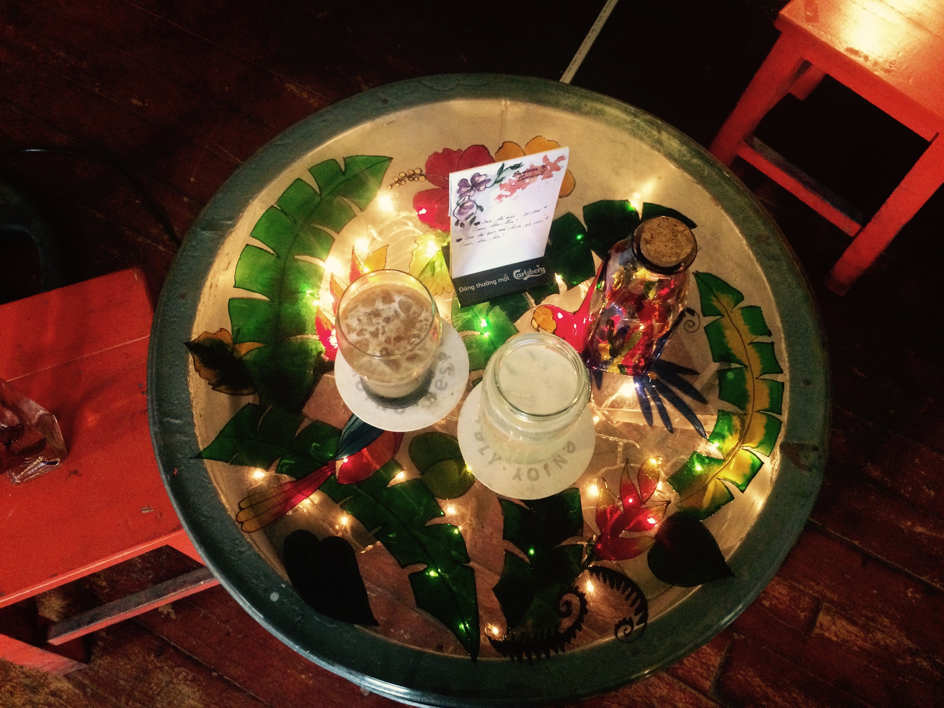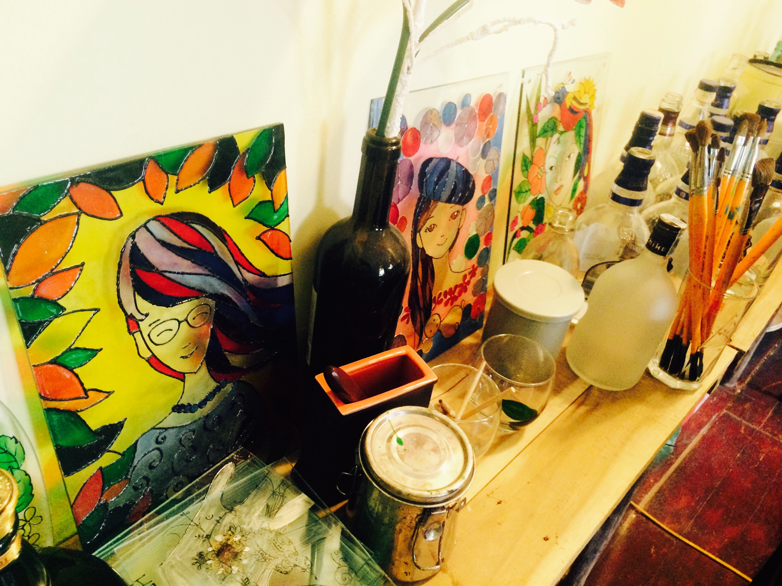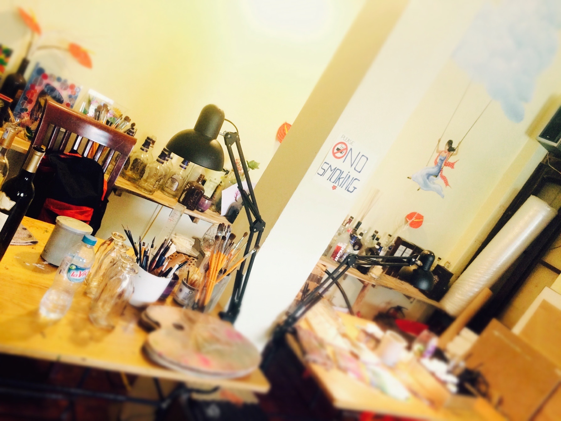 Để tạo được ra các tác phẩm này, trong quán có một xưởng vẽ nho nhỏ nằm ngay cạnh khu khách ngồi.