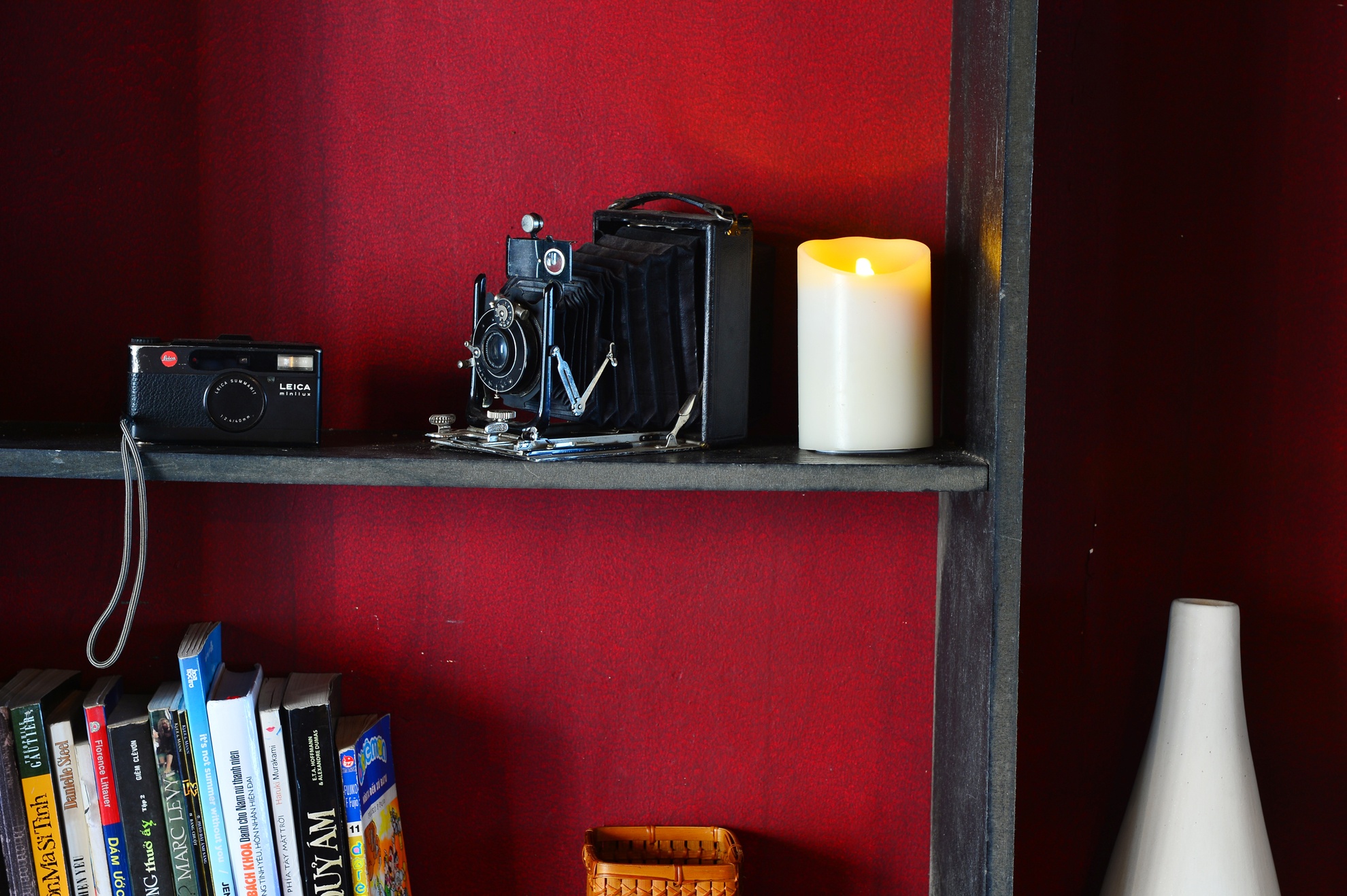 | Khách có thể thoải mái tìm sách trên kệ đọc hoặc tý toáy với chiếc máy ảnh hiệu Leica. |