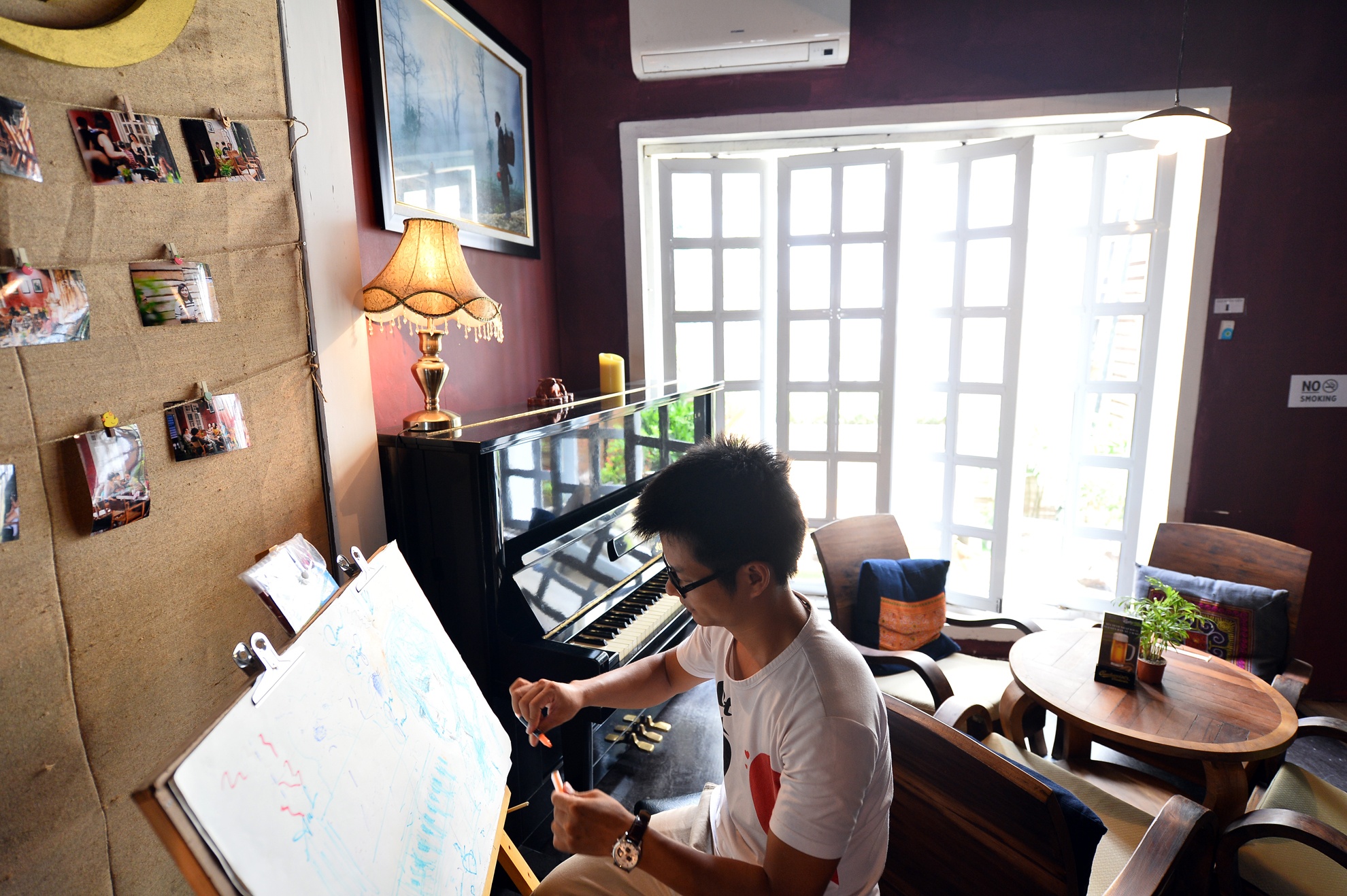 | Hai tháng gần đây nhiếp ảnh gia Nguyễn Việt Thanh và chàng kiến trúc sư trẻ Lê Ngọc Anh quyết định thiết kế lại và đầu tư vào đây 500 triệu đồng để thỏa mãn niềm đam mê với cafe của mình. Ngọc Anh từng đoạt 2 giải quốc tế về Kiến trúc học năm 2009 và 2010 tại liên bang Nga nên thiết kế một quán cafe nhỏ như thế này đối với anh là chuyện rất nhỏ. |