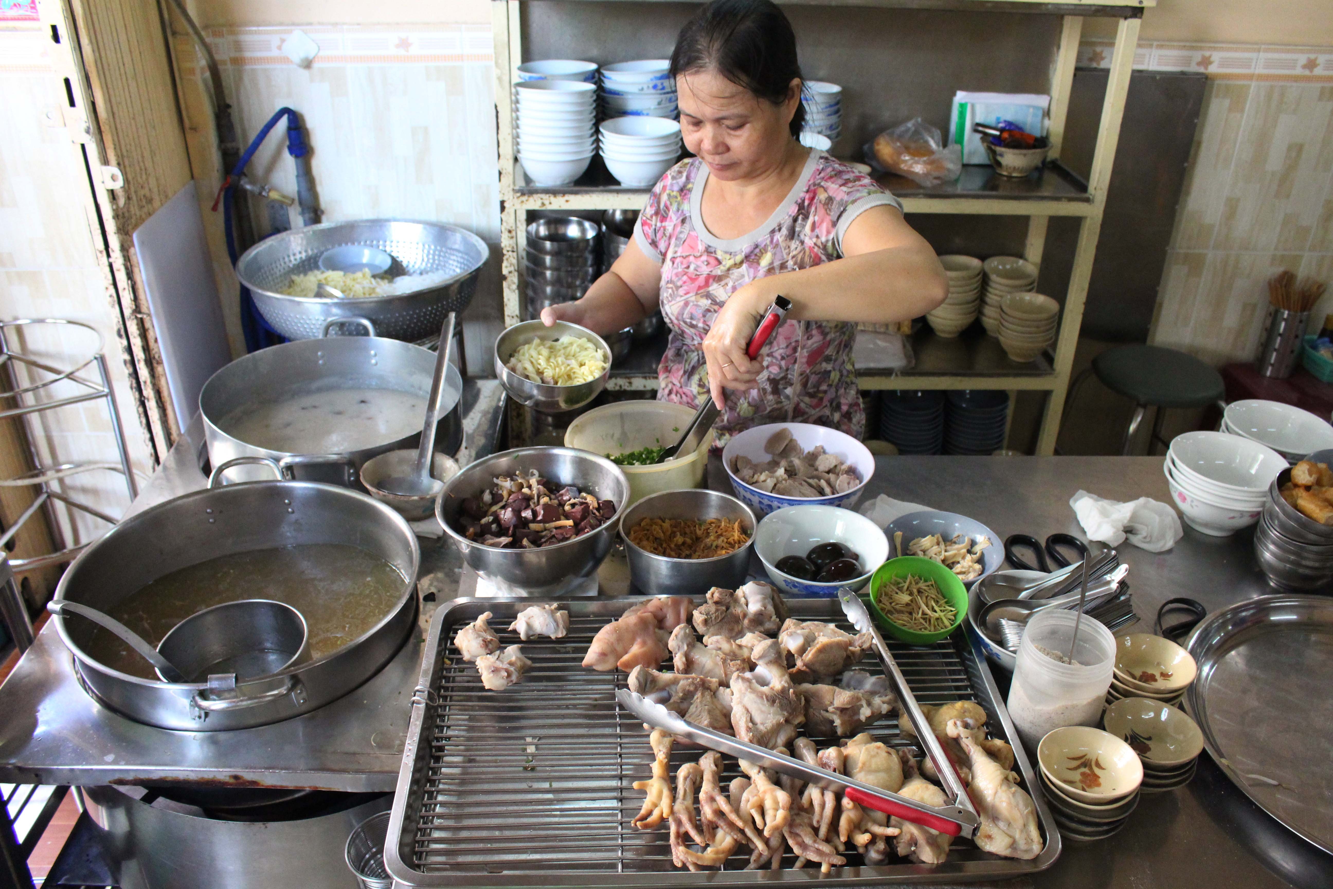 Danh sách các món ăn kèm cháo tại đây khá phong phú. Từ khoanh giò heo hầm mềm, đùi, cánh gà luộc.... |