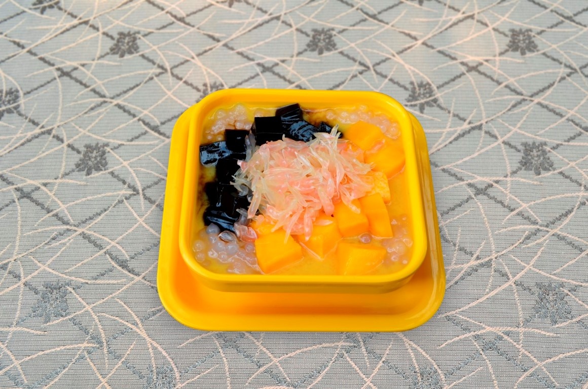 Món chè-bánh Giang nam đệ nhất tài tử mang đến những trải nệm khác nhau trong cùng một miếng cắn. Đầu tiên là cảm giác mềm, mịn của phần vỏ bánh bía ngọt, tiếp đến là lớp kem tươi béo mềm, cuối cùng là cái tươi, thơm, ngọt mát của xoài chín ướp lạnh.