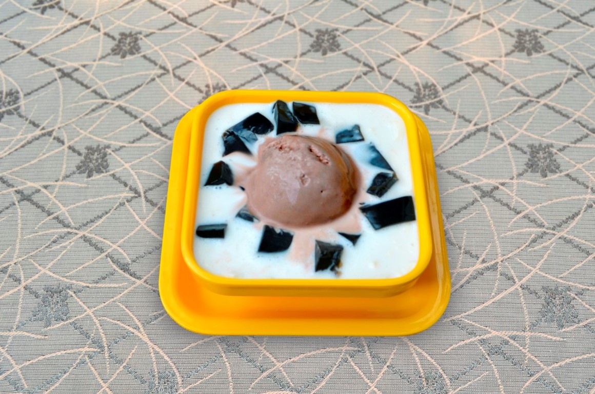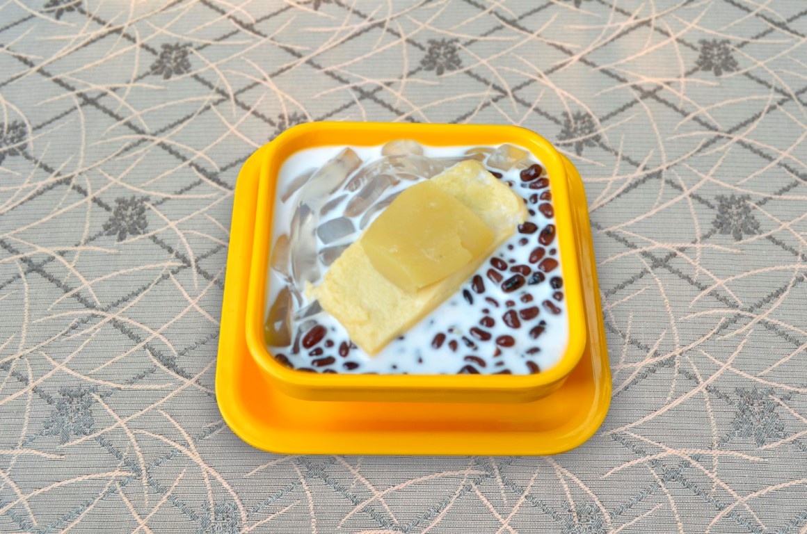 Thu Hương cao điểm, món chè lạnh gắn với mỹ nhân trong mộng của Đường Bá Hổ, là sự kết hợp giữa màu đen của sương sáo, vàng của xoài chín, vàng nâu của bánh flan. Món này có hai điểm cộng. Một là bánh flan có độ đậm đặc, cùng mùi thơm khác hẳn các nơi khác. Hai là, kem cà phê đặc chế riêng tại quán ẩn bên dưới ba thành phần trên.