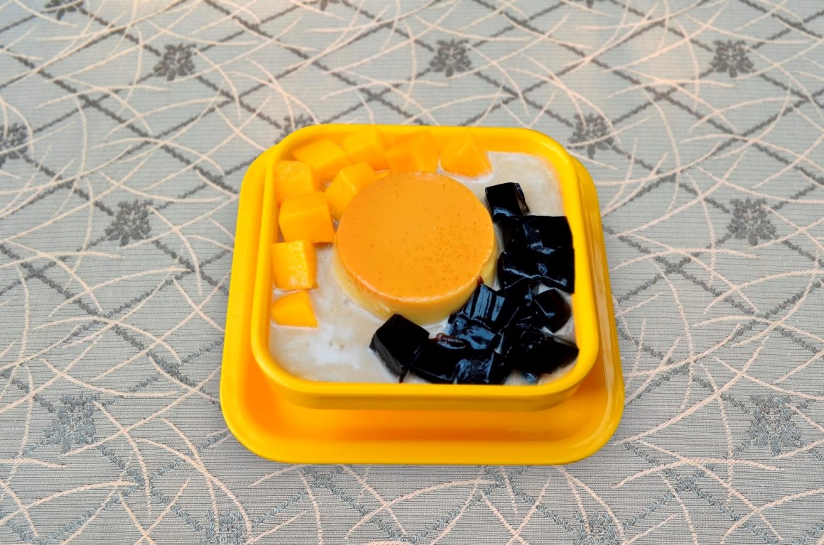 | Món Thu Hương cao điểm cao với kem cà phê lạ miệng nối kết vị ngon của xoài, bành flan và sương sáo. |