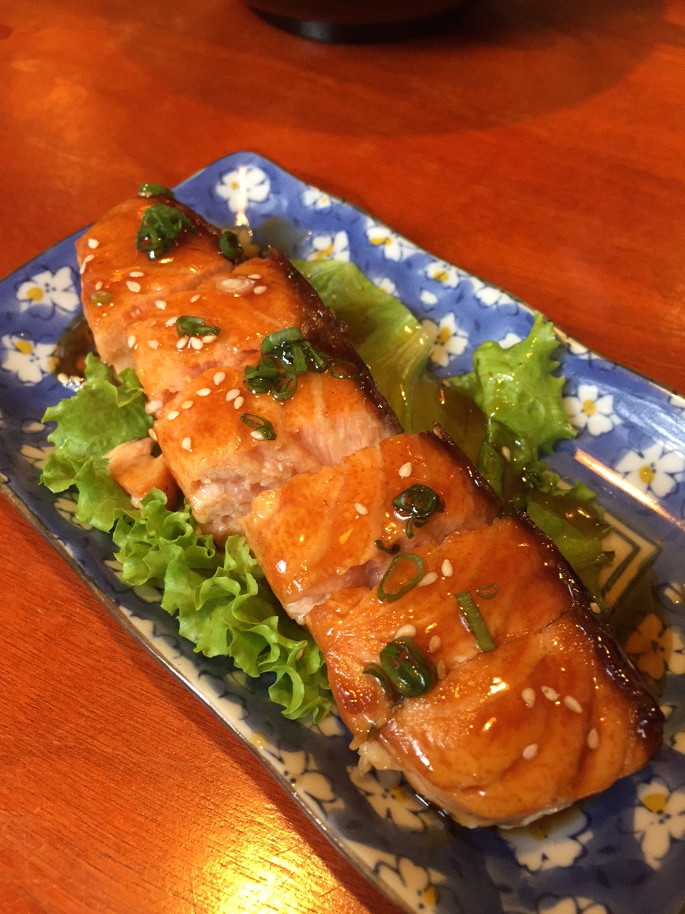 Đây là món cá hồi Nauy áp chảo kèm nước sốt đặc biệt. 95.000 đồng một đĩa cá hồi với lớp da giòn tan, thịt ngọt chắc, nước sốt đậm đà, dậy mùi nên rất đáng tiền.