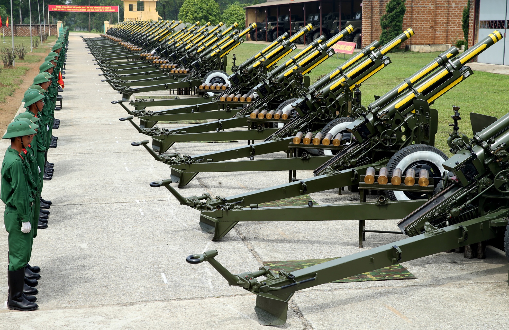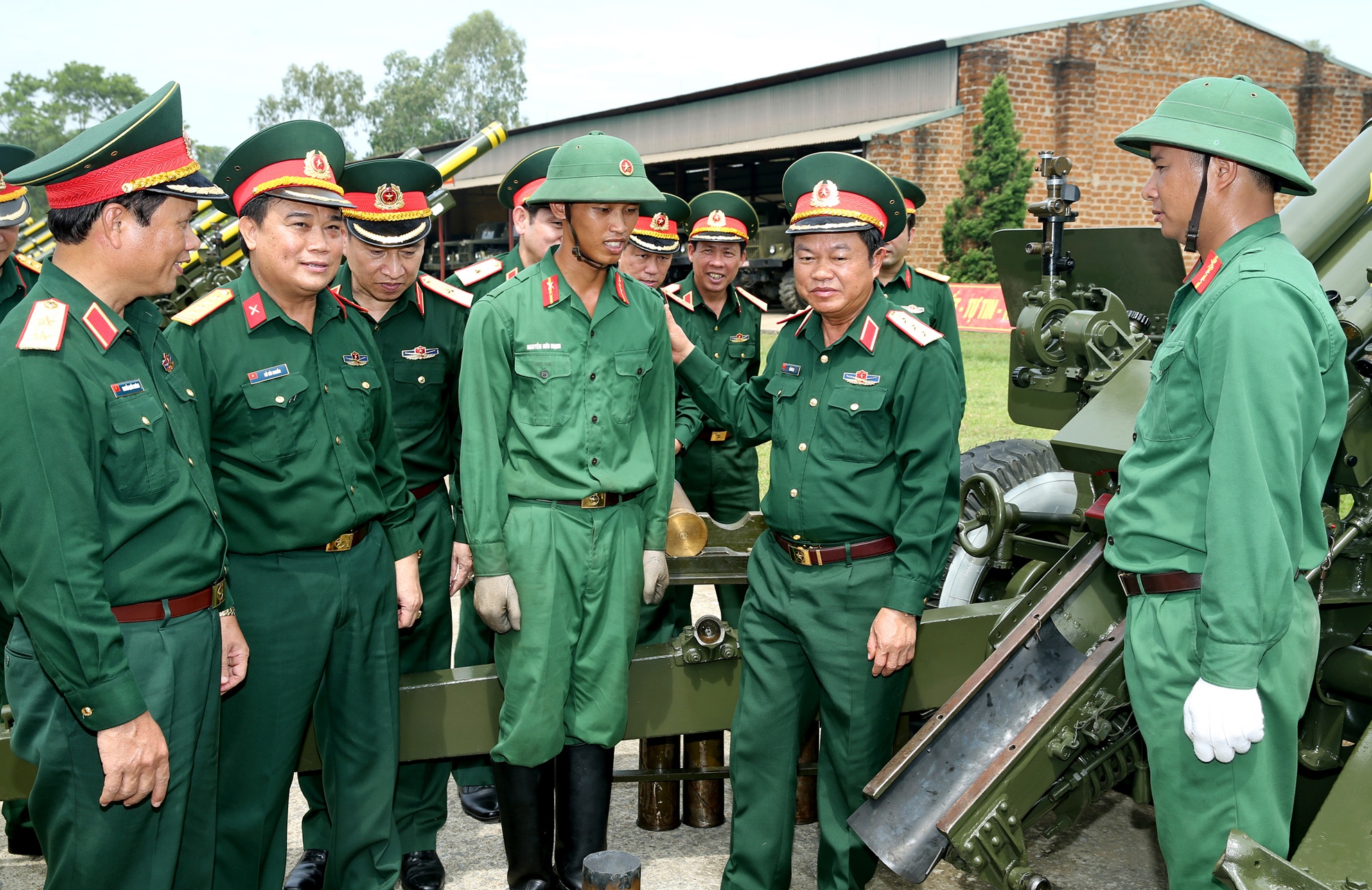 Thượng tướng Đỗ Bá Tỵ - Tổng Tham mưu trưởng, Thứ trưởng Bộ Quốc phòng kiểm tra và động viên đội pháo lễ.