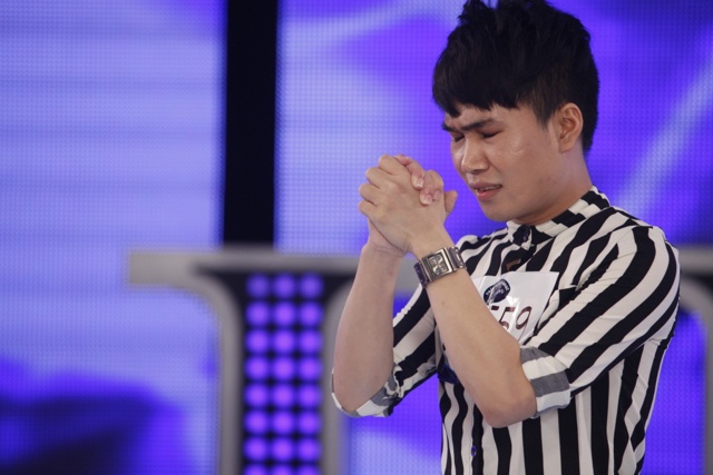 | Quân Kun bất ngờ quỳ để van xin giám khảo. |